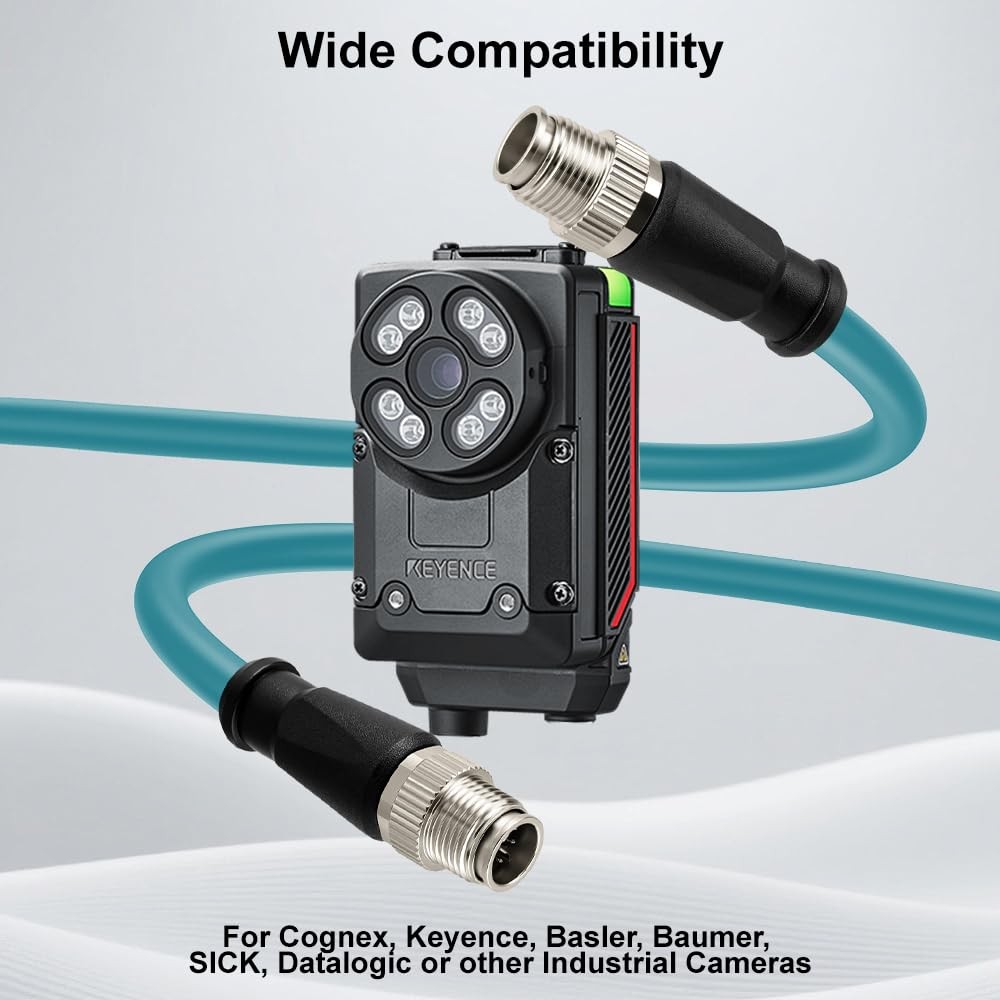 M12 X-Code 8 Pin to 8 Pin Ethernet Cable for Cognex Basler Industrial Camera 2m