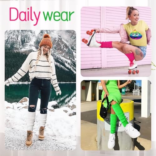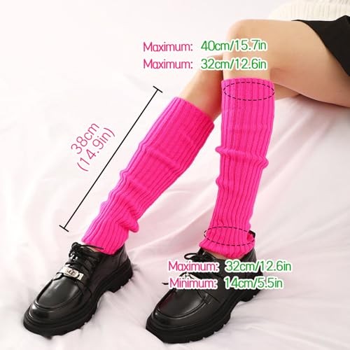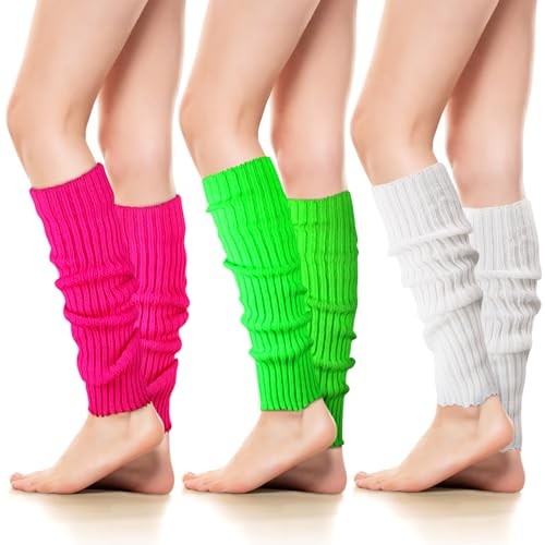 Leg Warmers 80s Women, 3 Pairs Knit Neon Leg Rose Red, Fluorescent Green, White