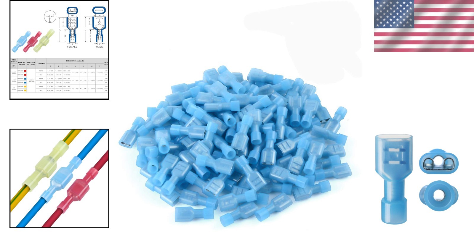 100 Pcs Insulated 16-14 AWG Blue Nylon Female Spade Connectors - Safe Reliable