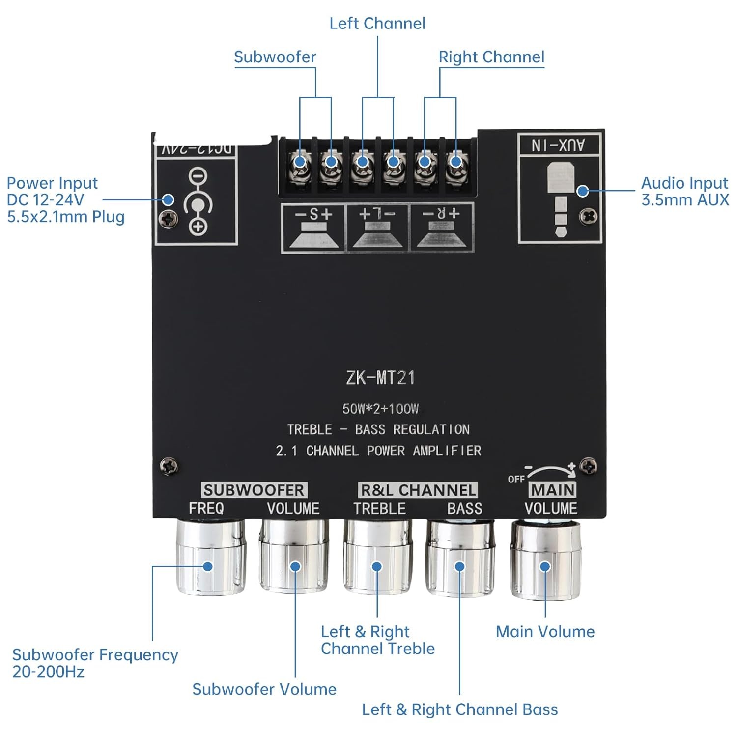 Bluetooth Power Amplifier Board with Subwoofer Audio Power Amplifier Module