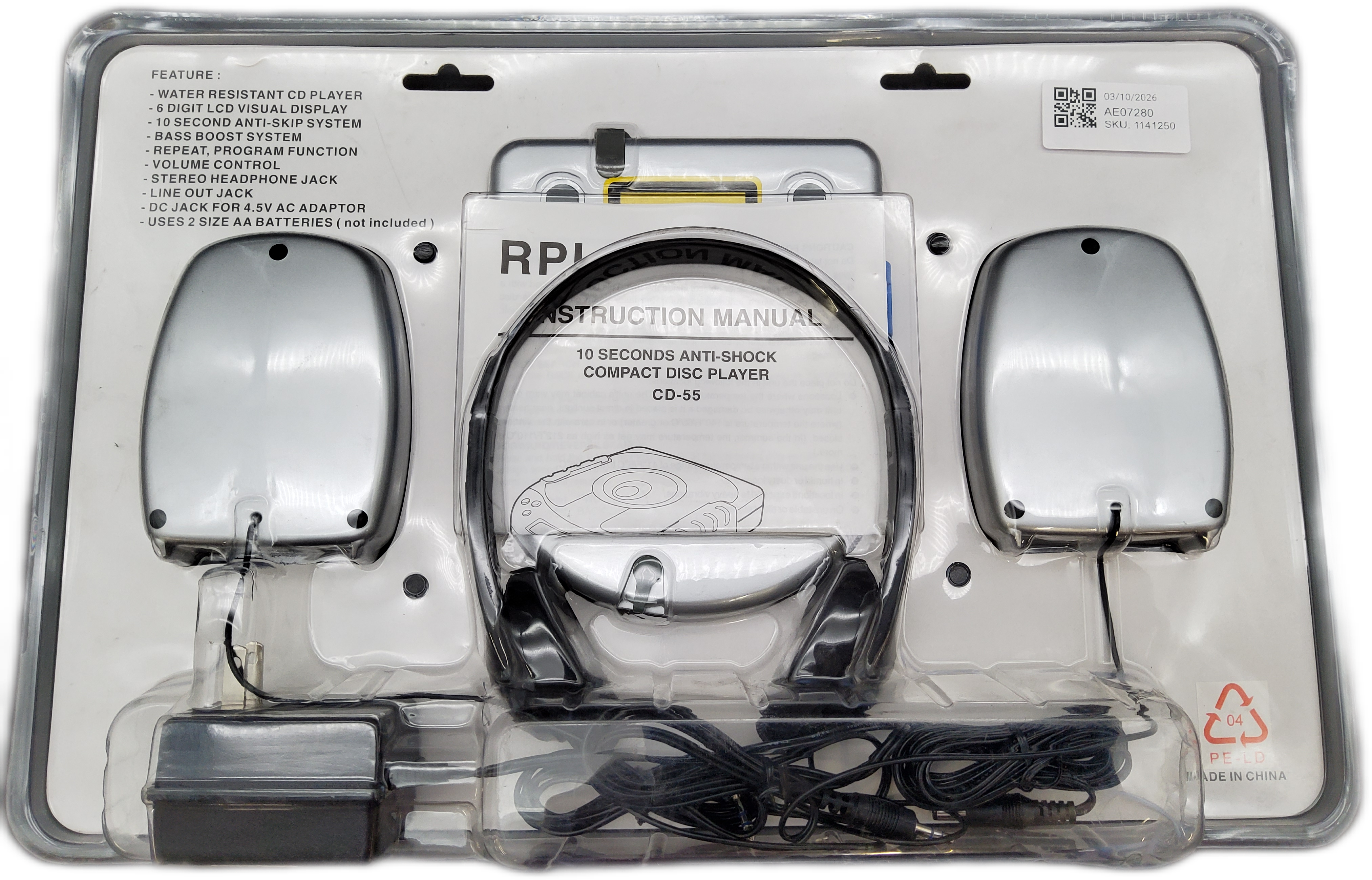 RPI Sport CD-55 Portable CD Player Super Bass Booster w/Speakers
