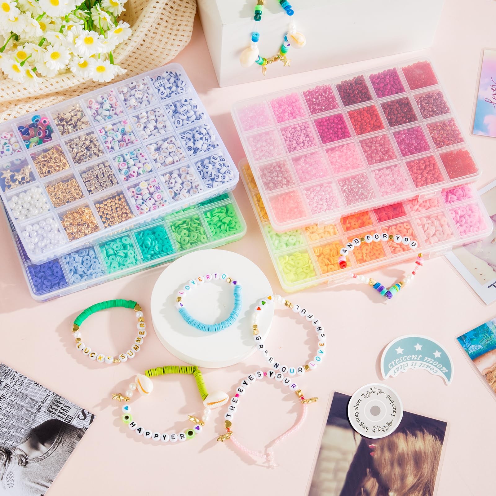 Jewelry Making Bead Kit 4 Storage Boxes, 13056 Pcs 72 Colors Valentine s Da...