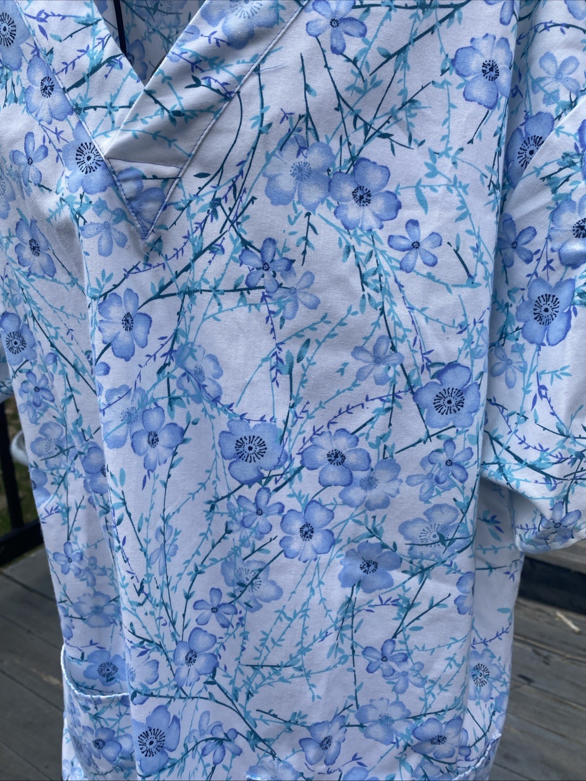 Crest Blue White Floral Scrub Top Size XL