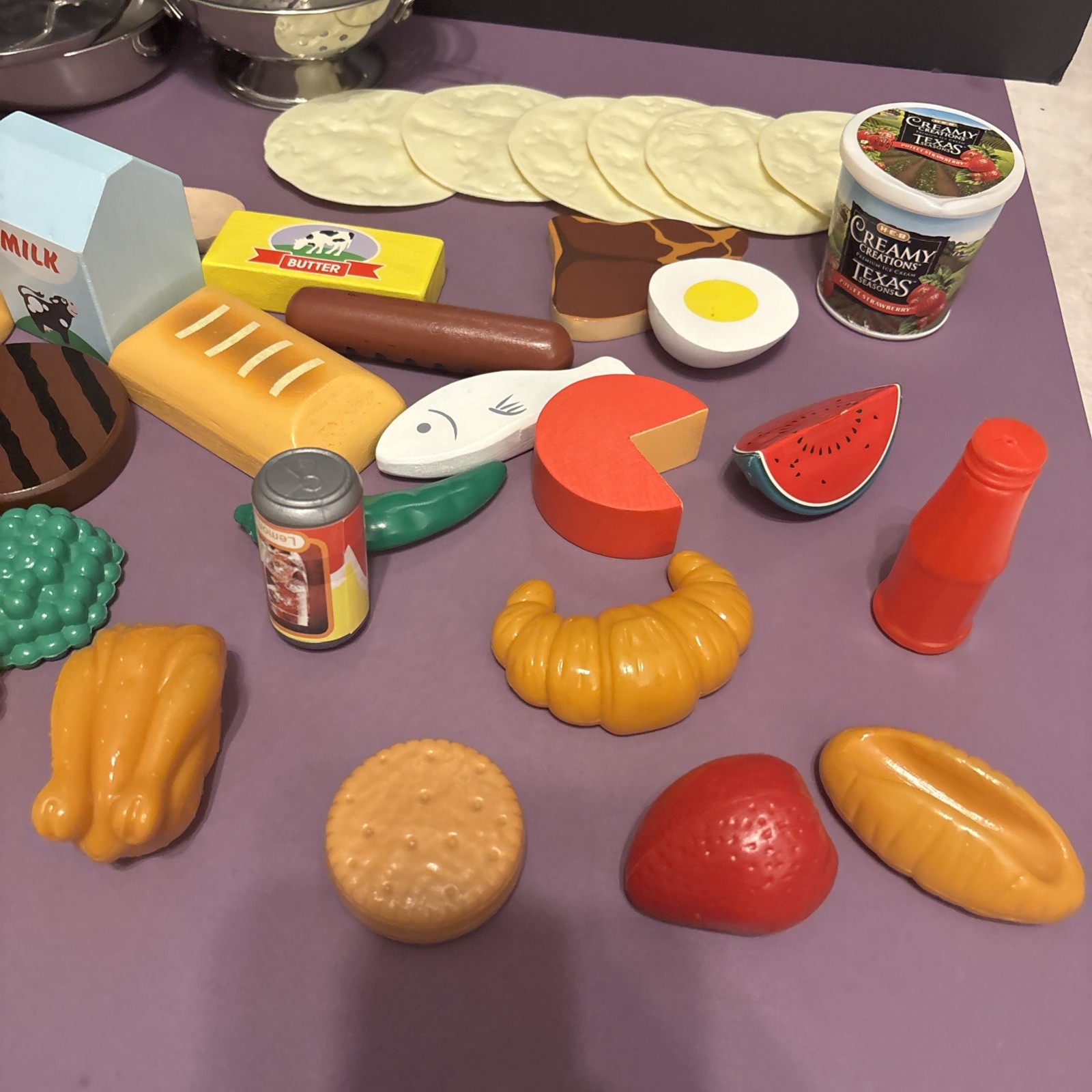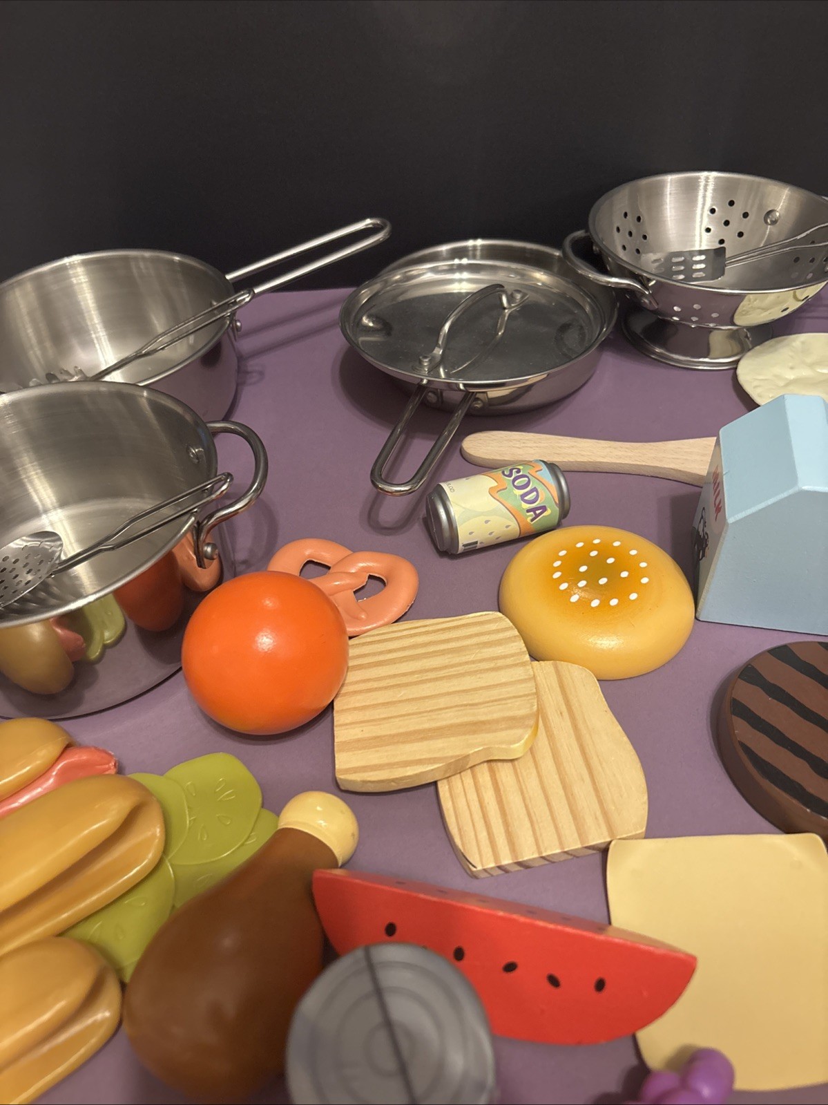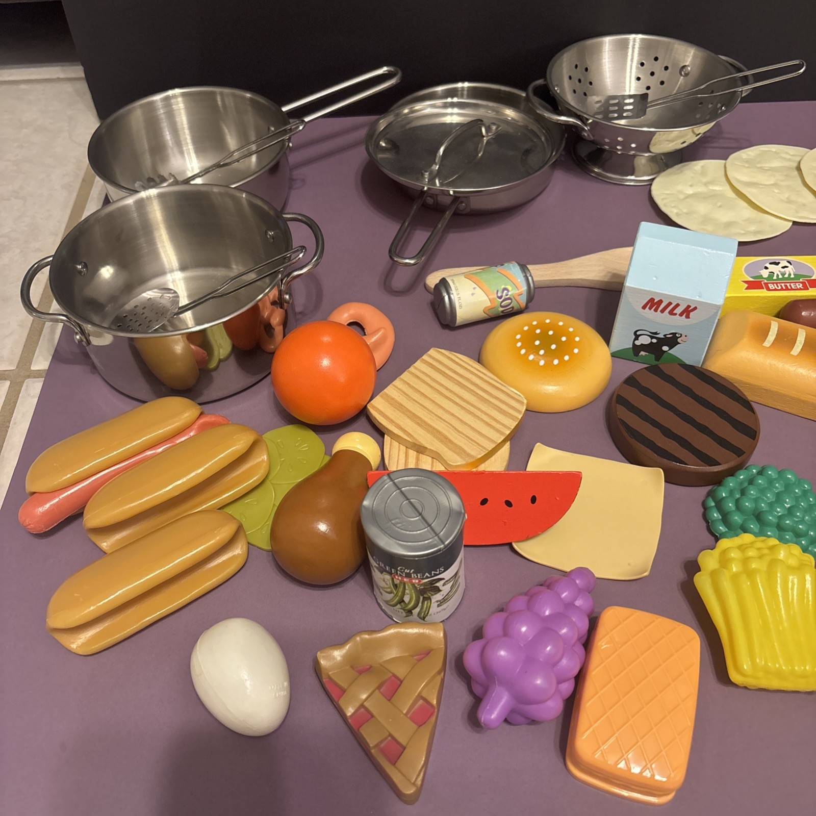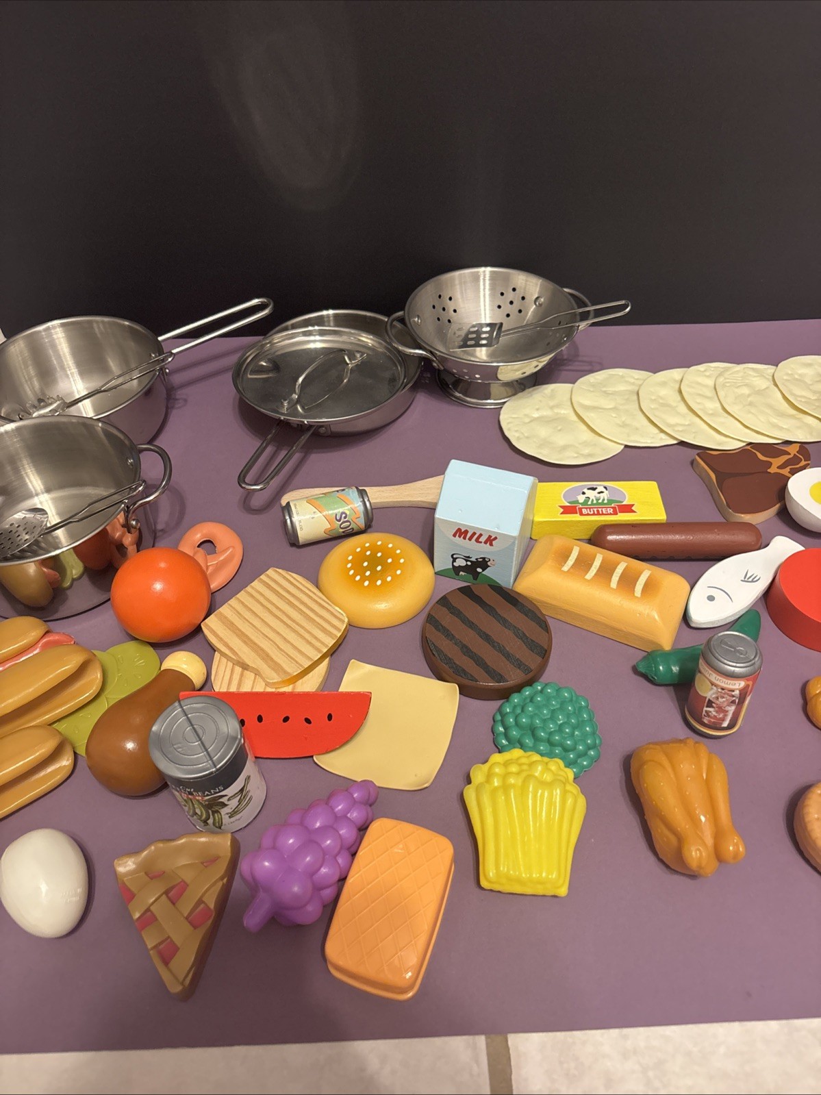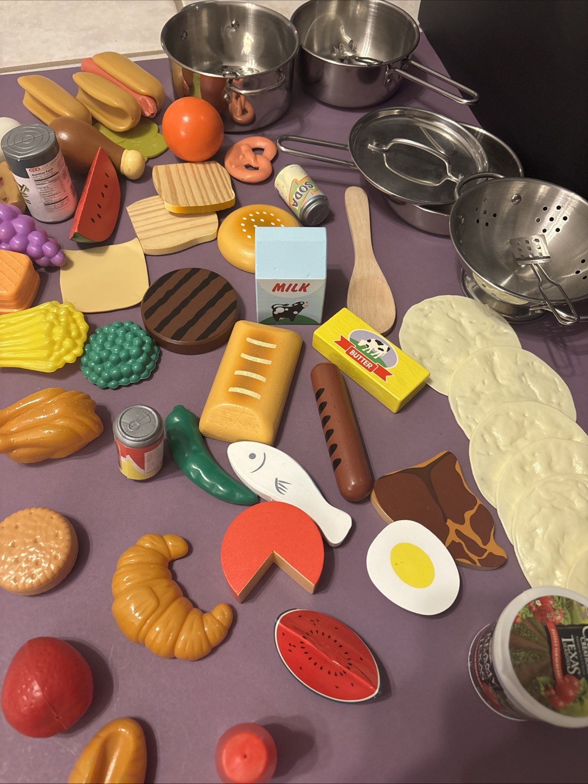 Vintage Melissa Doug Wood And Plastic Toy Food Play Food Kitchen Lot Of 55
