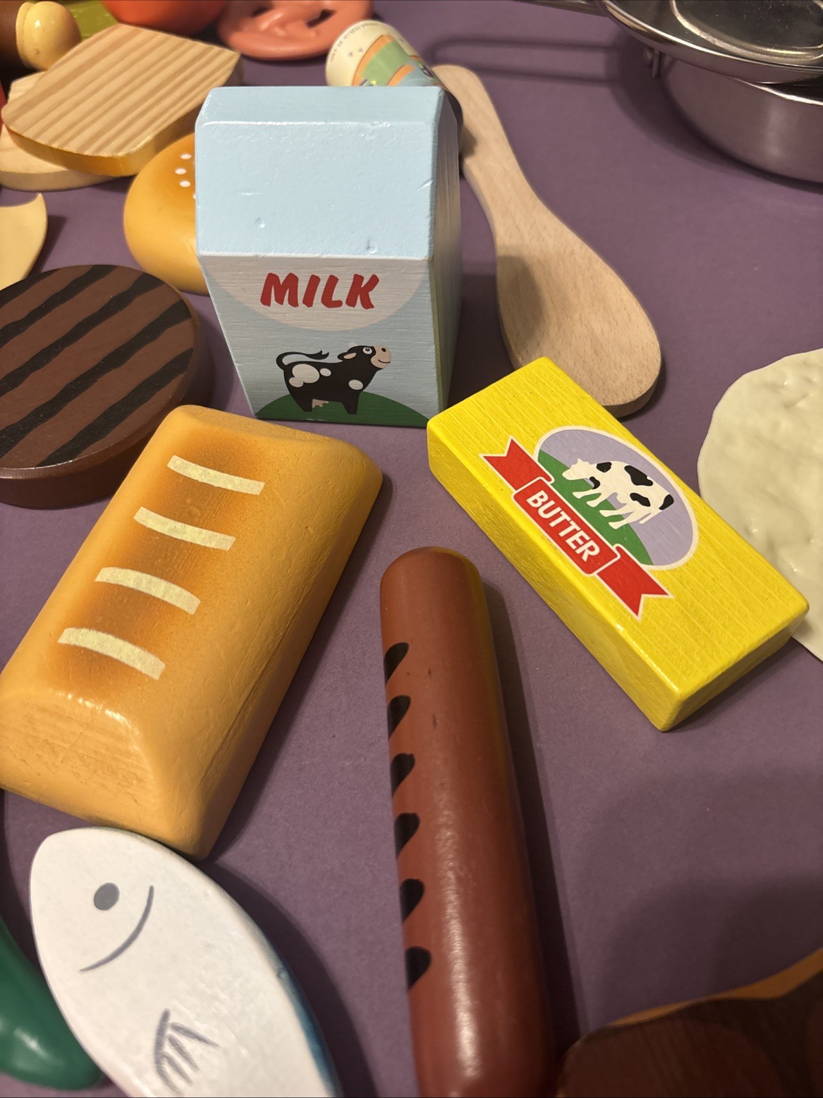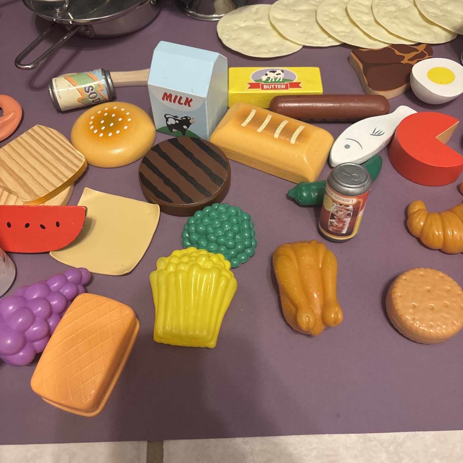как выглядит Vintage Melissa Doug Wood And Plastic Toy Food Play Food Kitchen Lot Of 55 фото