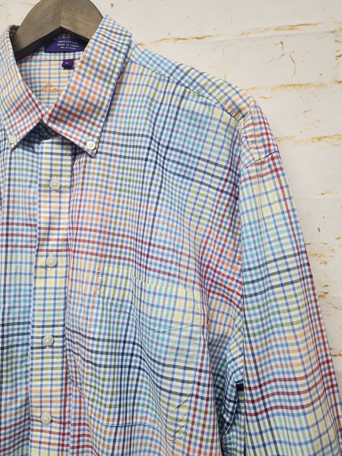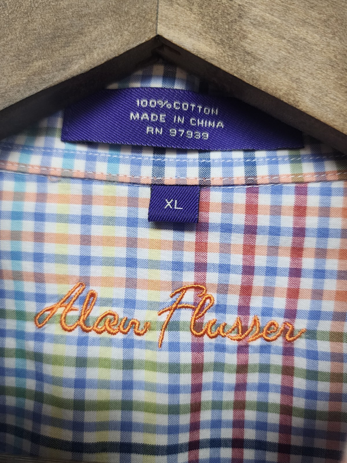 Alan Flusser Mens Button Down Shirt XL Long Sleeve Front Pocket Multicolor Check