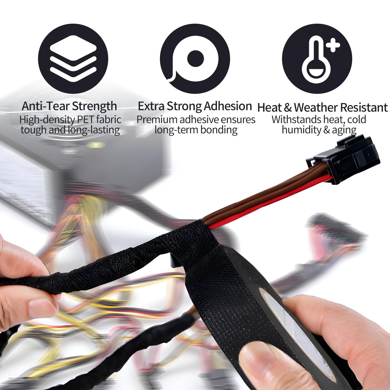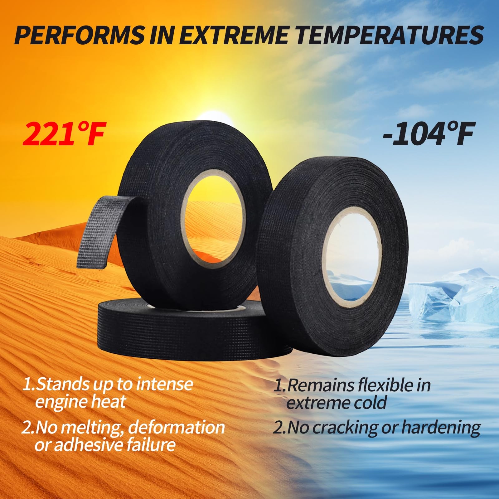 Wire Harness Tape - 3/4 Inch x 50 FT, 4 Rolls High Temp Electrical Tape, Stro...