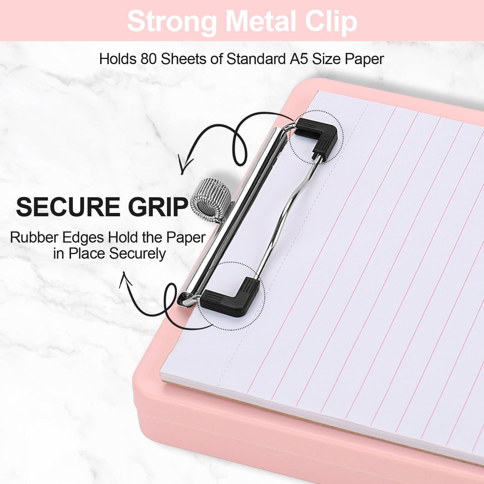 Small Clipboard with Storage, A5 Clipboards with Pen Holder, Half Letter Clip...