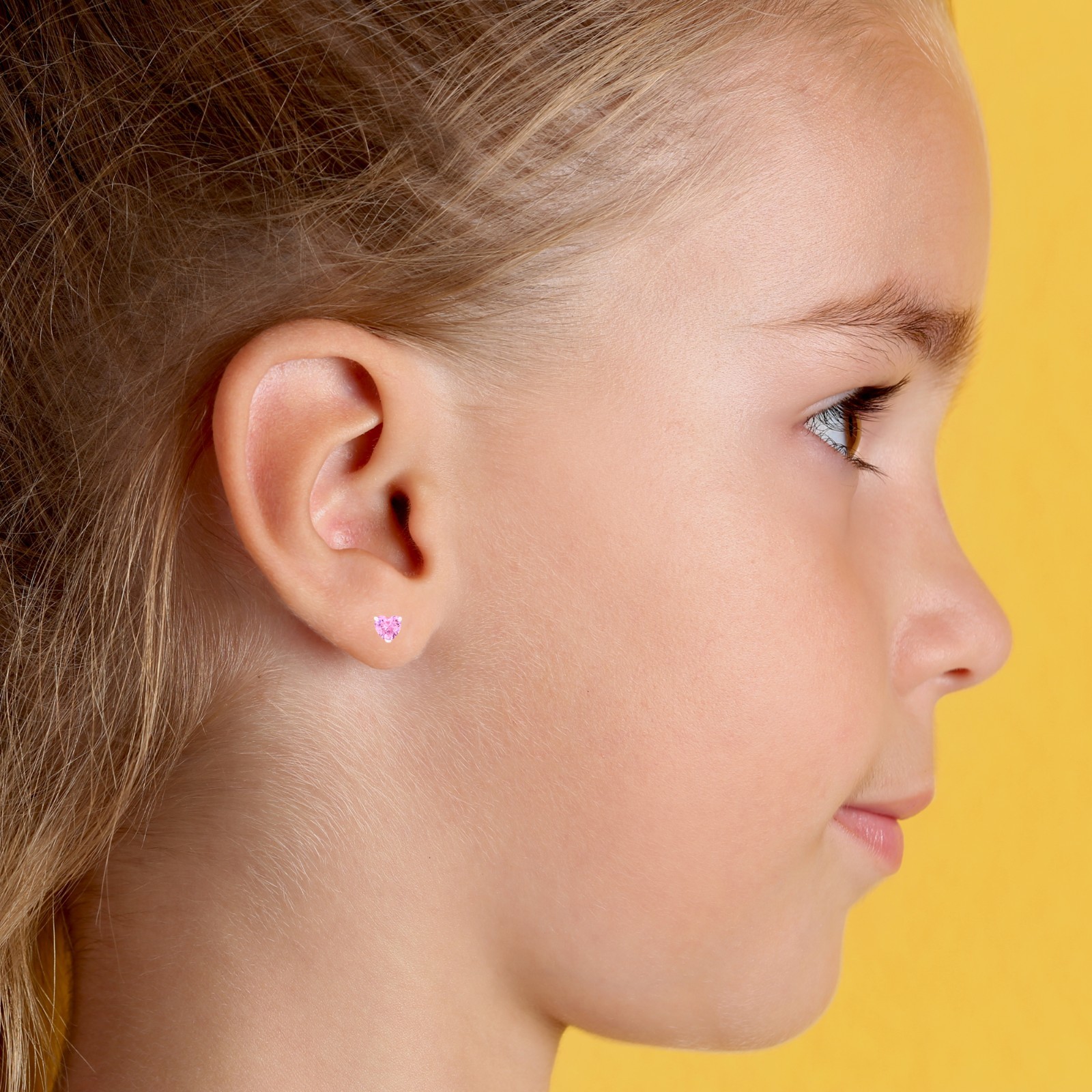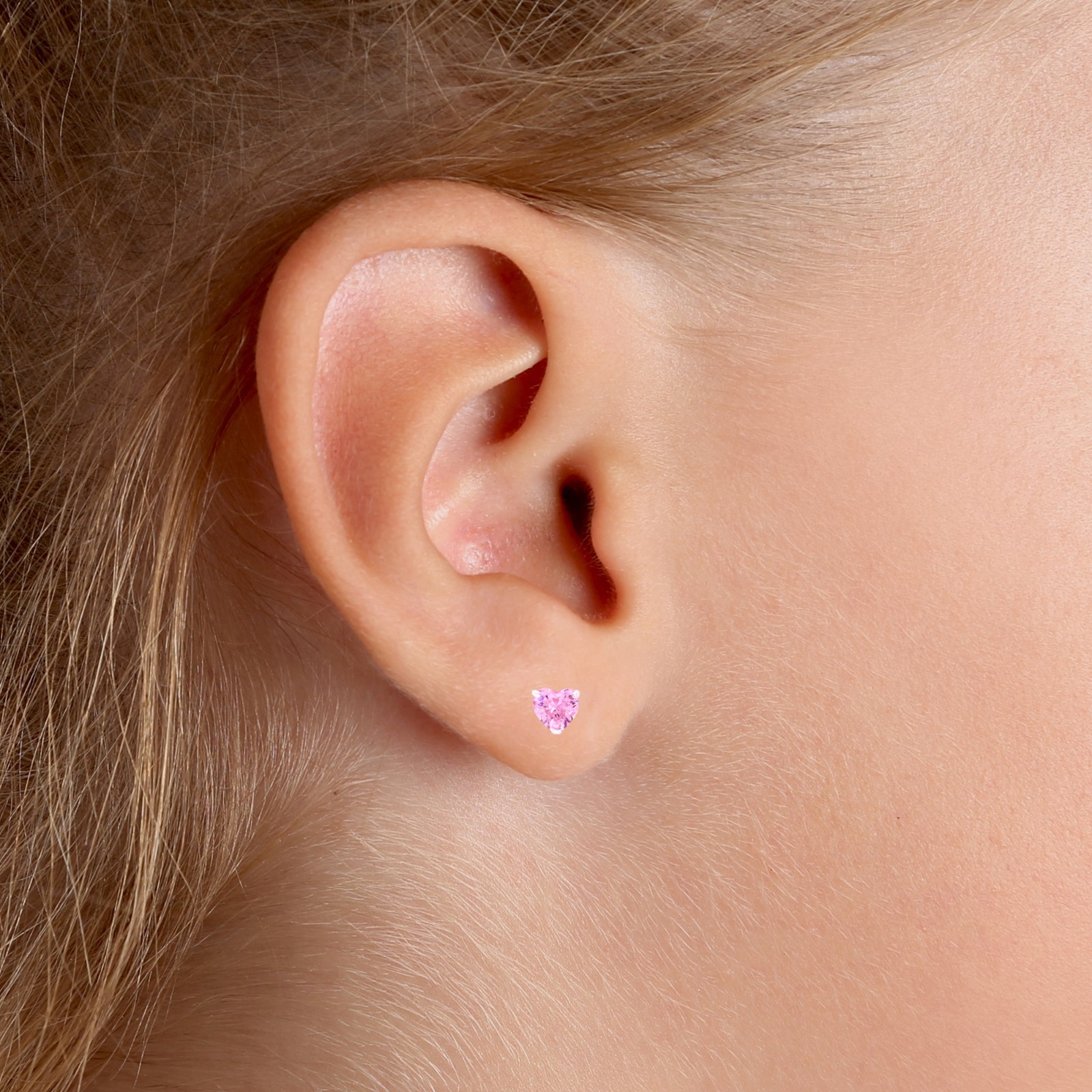 Pink Heart Baby Earrings Solid 14k Gold Screw Protective Backs 4mm