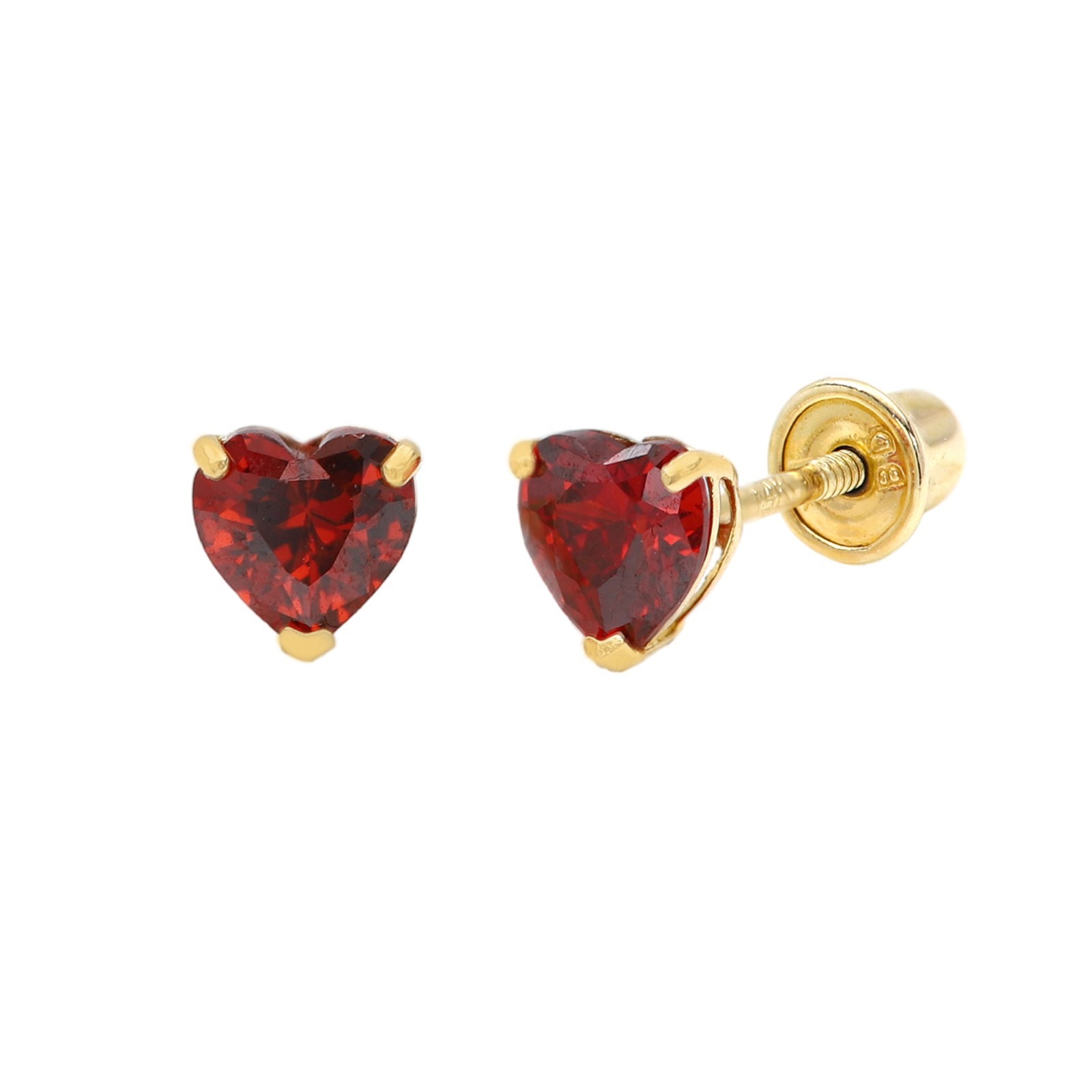 Red Heart Baby Earrings Solid 14k Gold Screw Protective Backs 4mm
