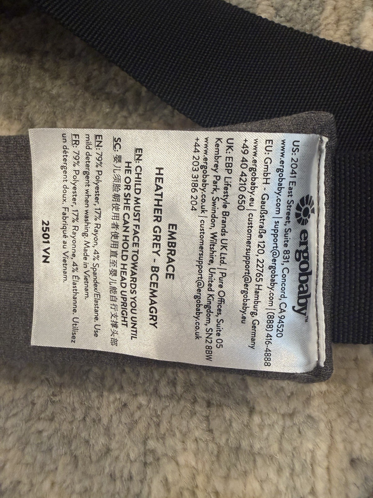 Ergobaby Embrace Cozy Newborn Baby Carrier Heather Grey NEW 99
