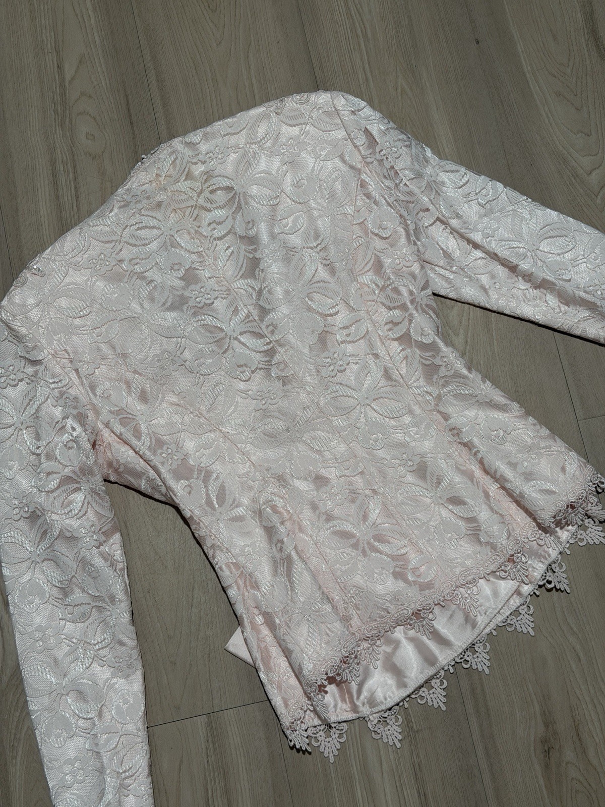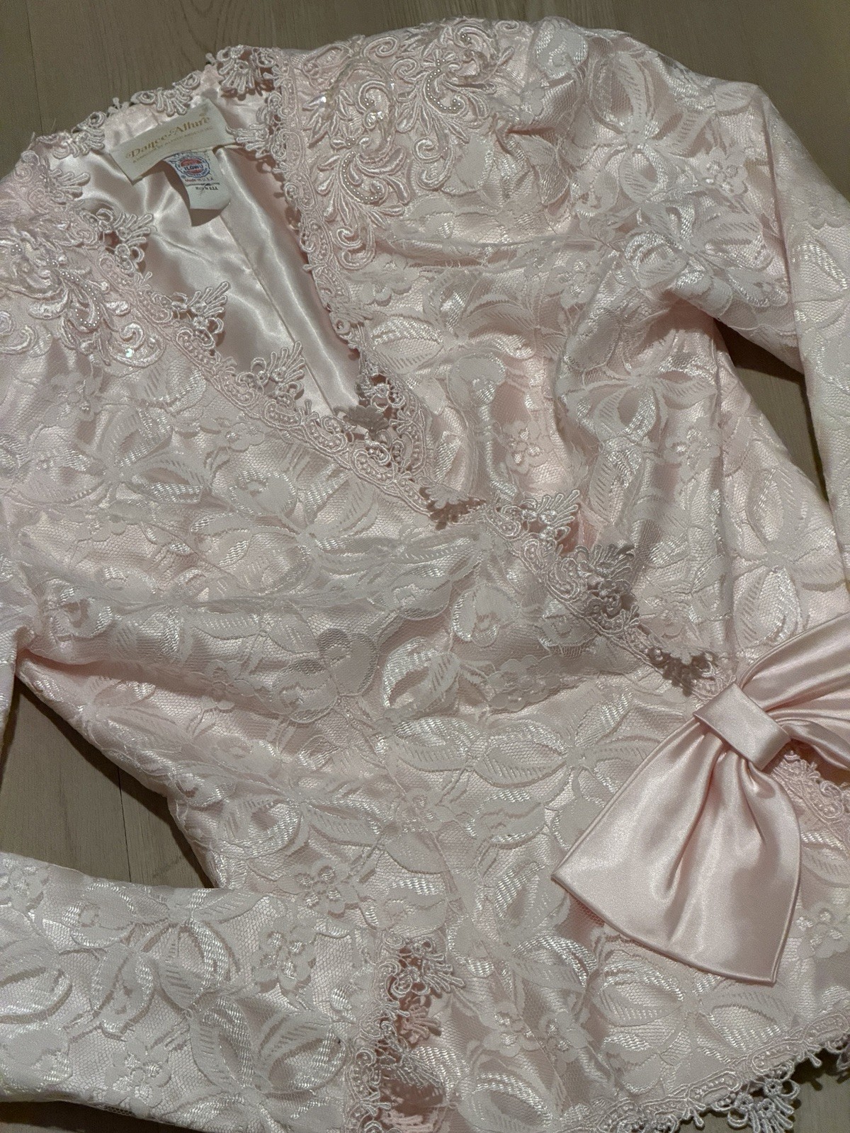 как выглядит Vintage Danee-Albee Alfred Angelo Pink Lace Jacket ILGWU Union Bridal Formal M фото