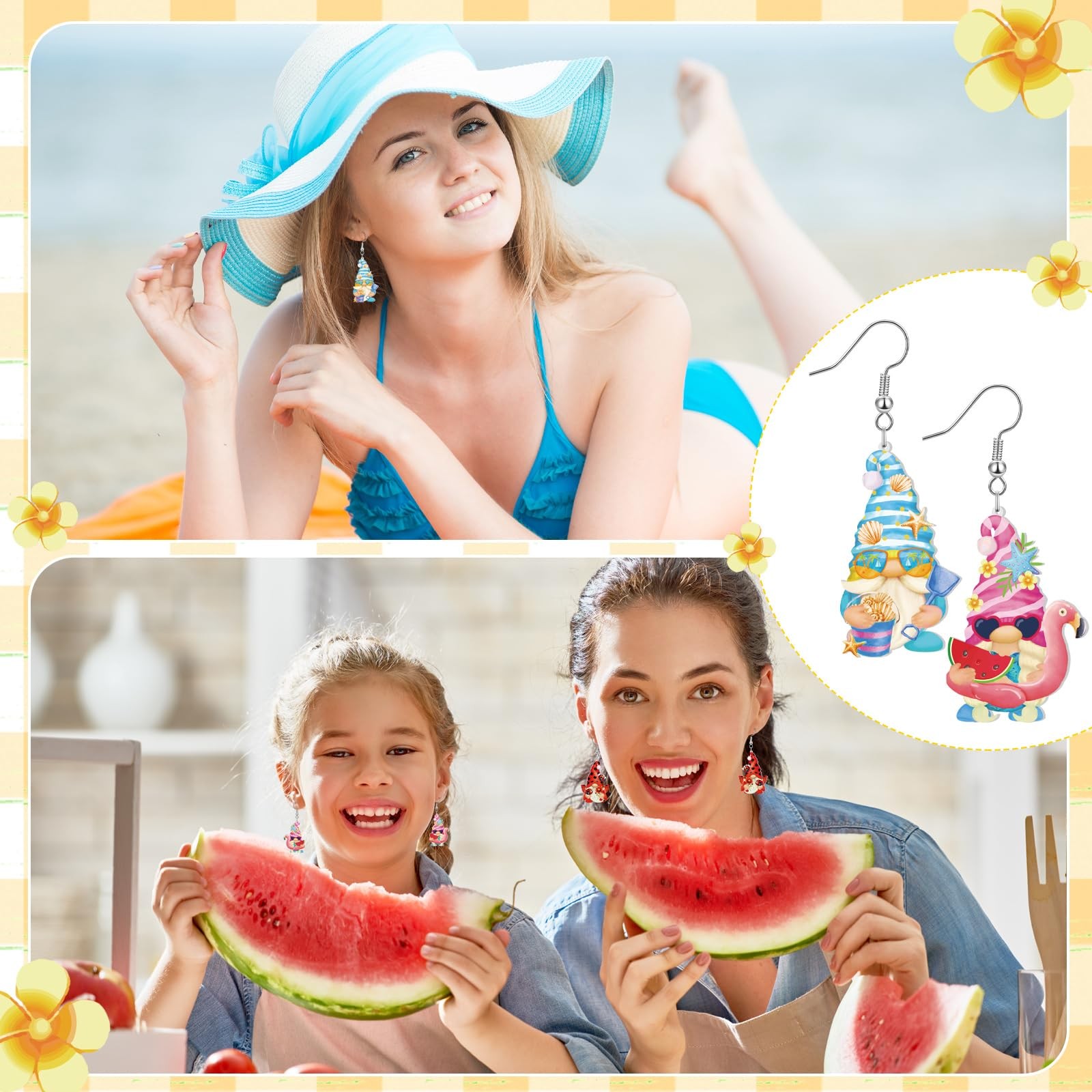 как выглядит 9 Pairs St. Patricks Day Holiday Earrings for Women Easter Gnome/truck/flora... фото