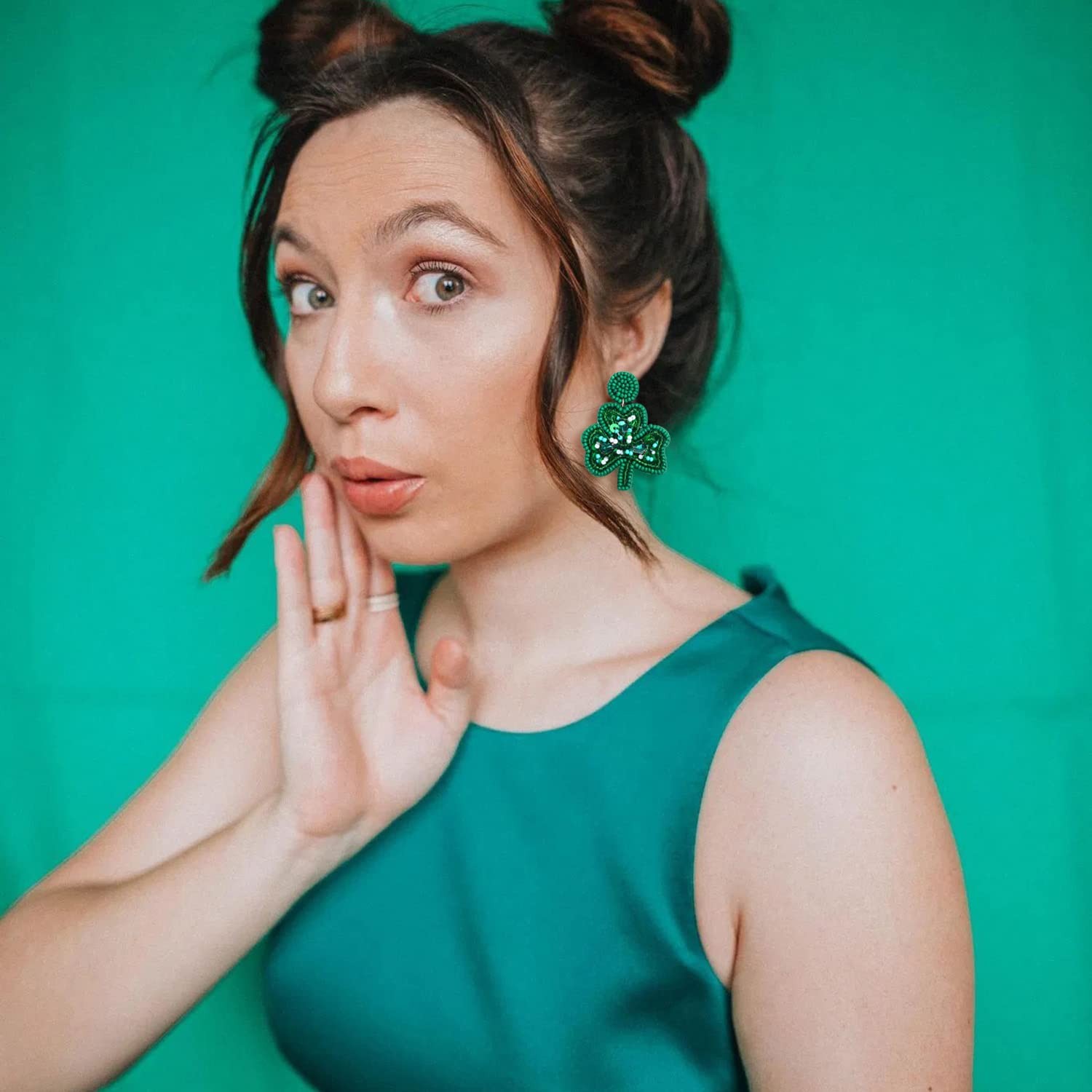St. Patrick's Day Earrings Beaded Green Leaf Earring for Women Handmade Lucky...