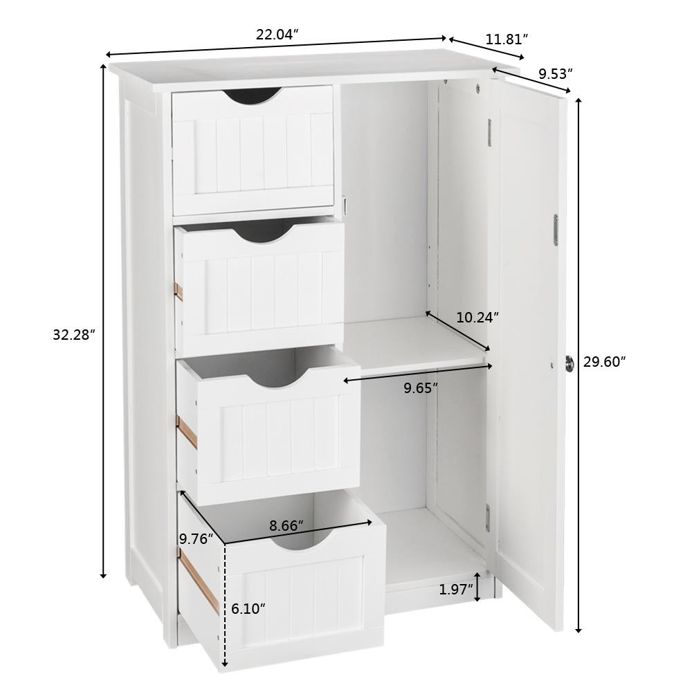 Bathroom Floor Cabinet Free-Standing Storage Cabinet w/ Door 4 Drawers Cupboards