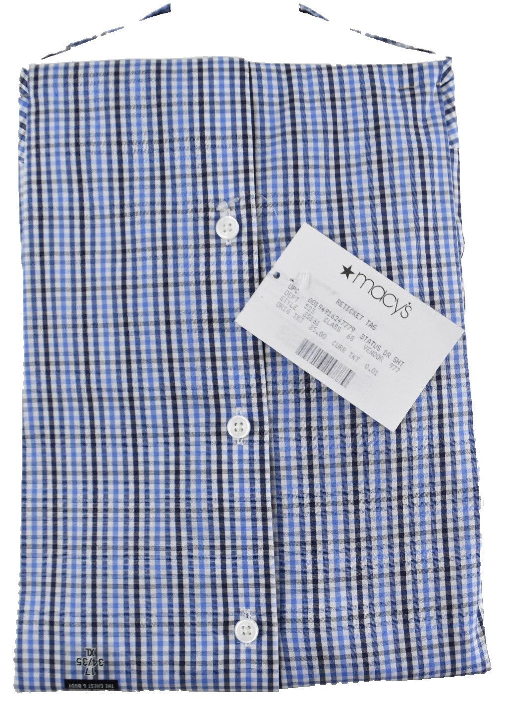 как выглядит Michael Kors Mens Dress Shirt XL 17 34/35 Blue Black Check Slim Fit Travel фото