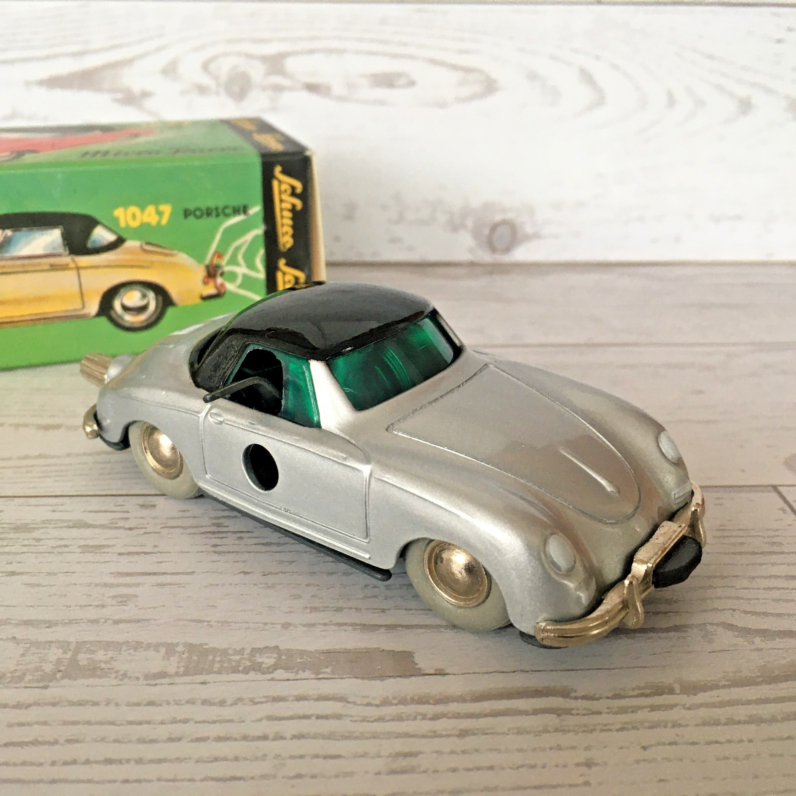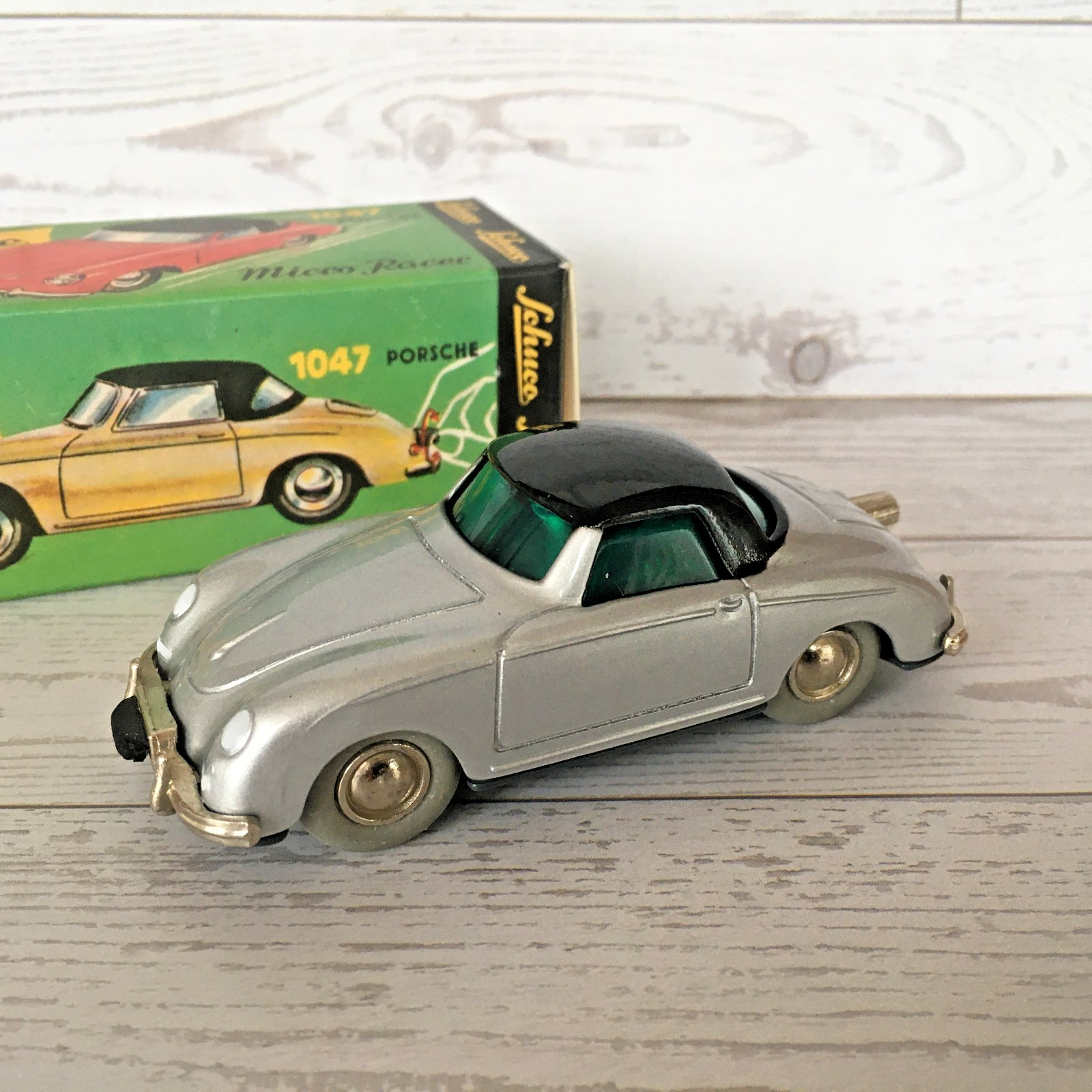 Schuco Micro Racer 1047 PORSCHE 356 with Key and Box - silver/black