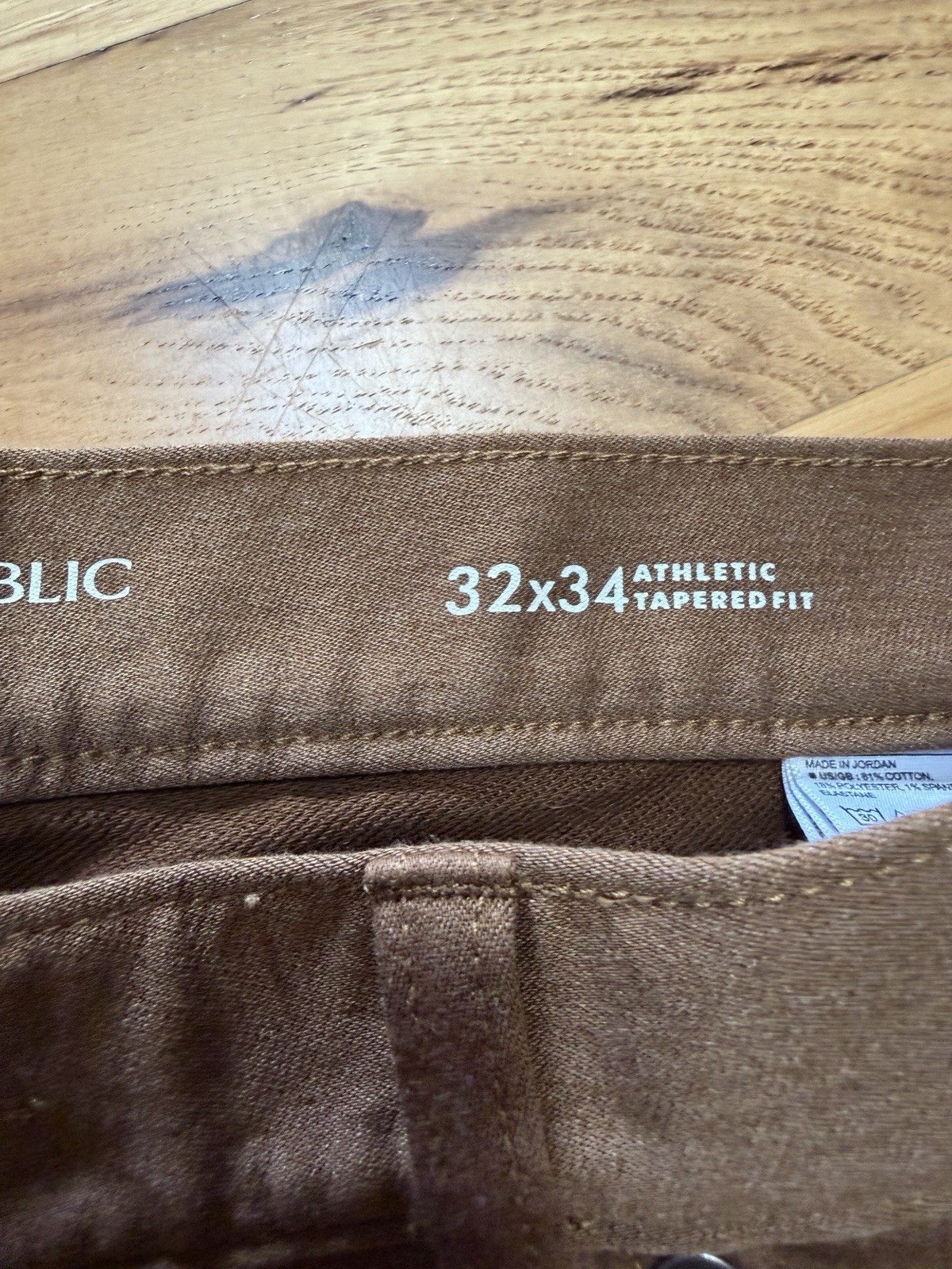 как выглядит Banana Republic Traveler Pants Mens 32x34 Rusty Brown Slim Fit Tapered EUC фото