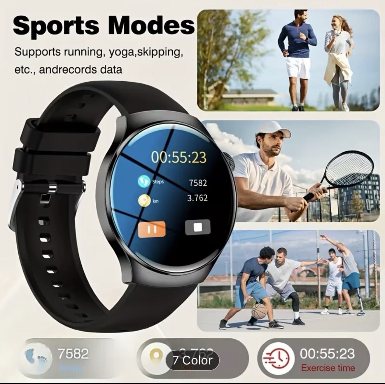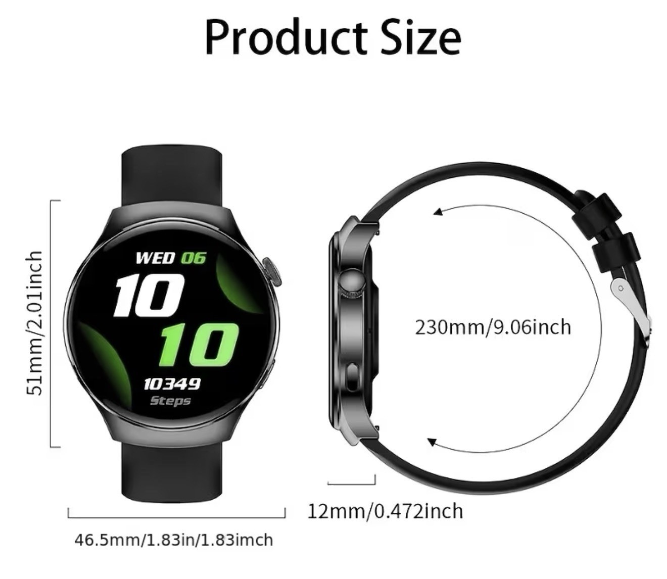 1.5-inch Touch Screen Smart Watch Wireless Calling Black Silicone Band