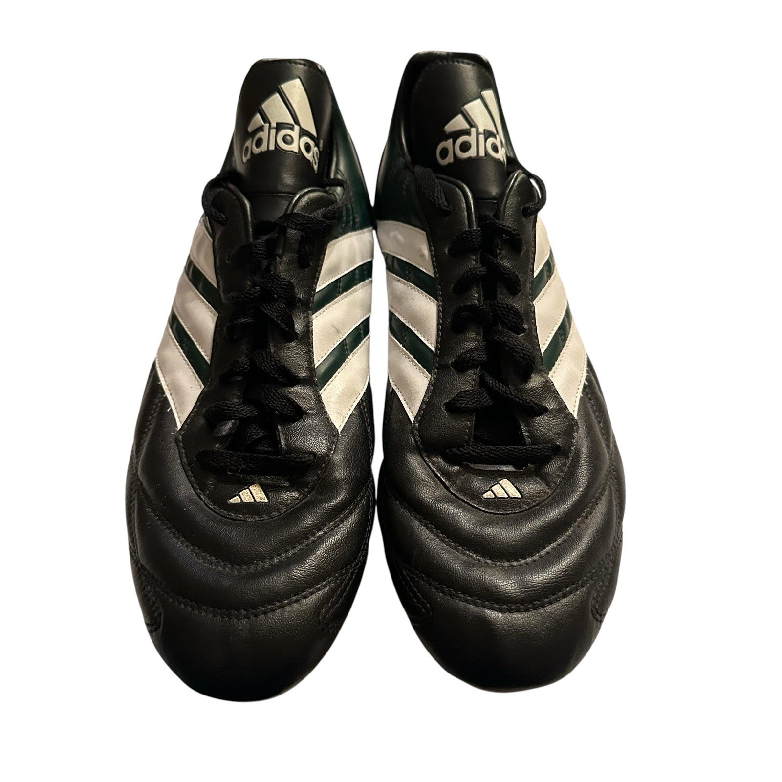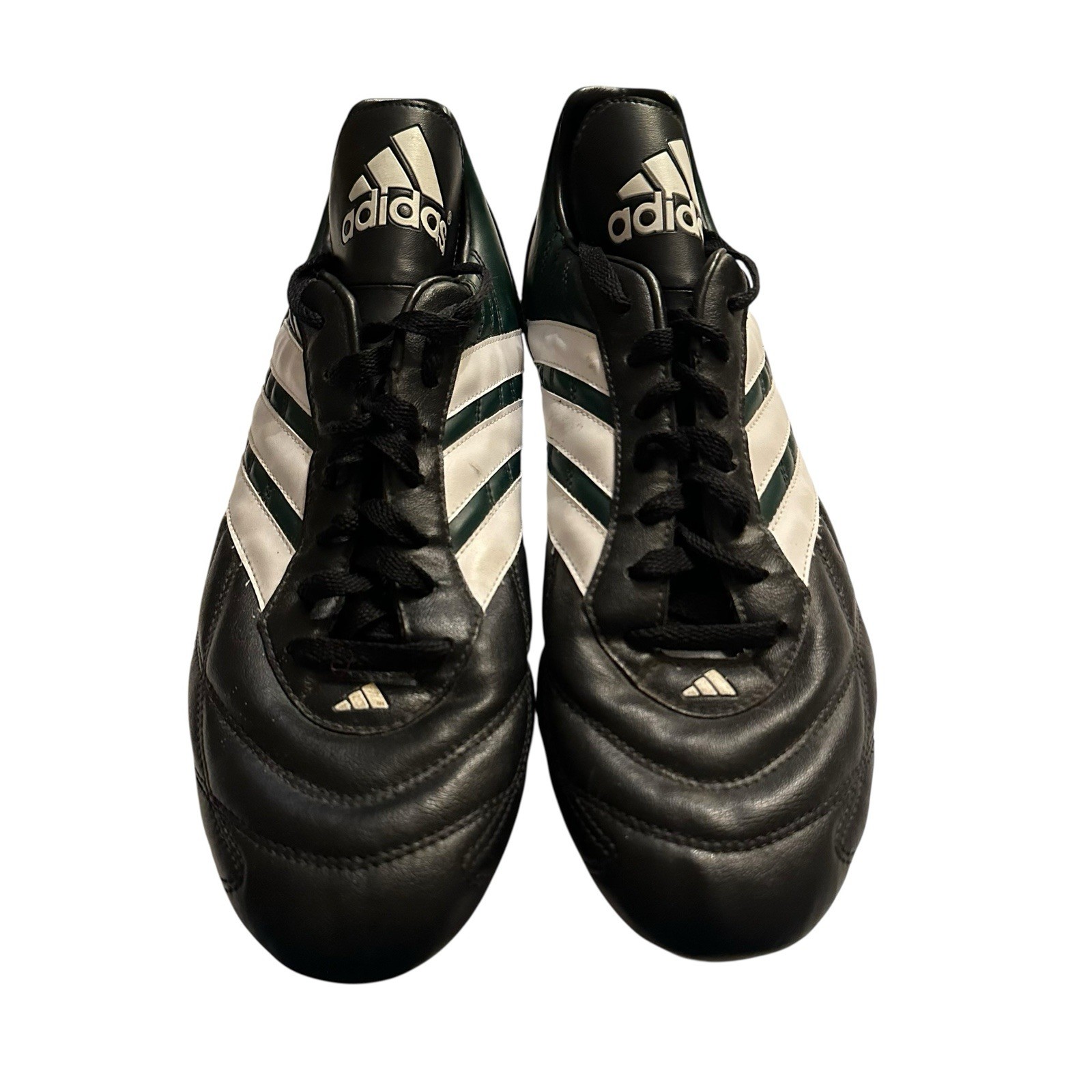 Vintage Adidas Black Green Leather Soccer Football Cleats Mens 11.5 663125 Rare