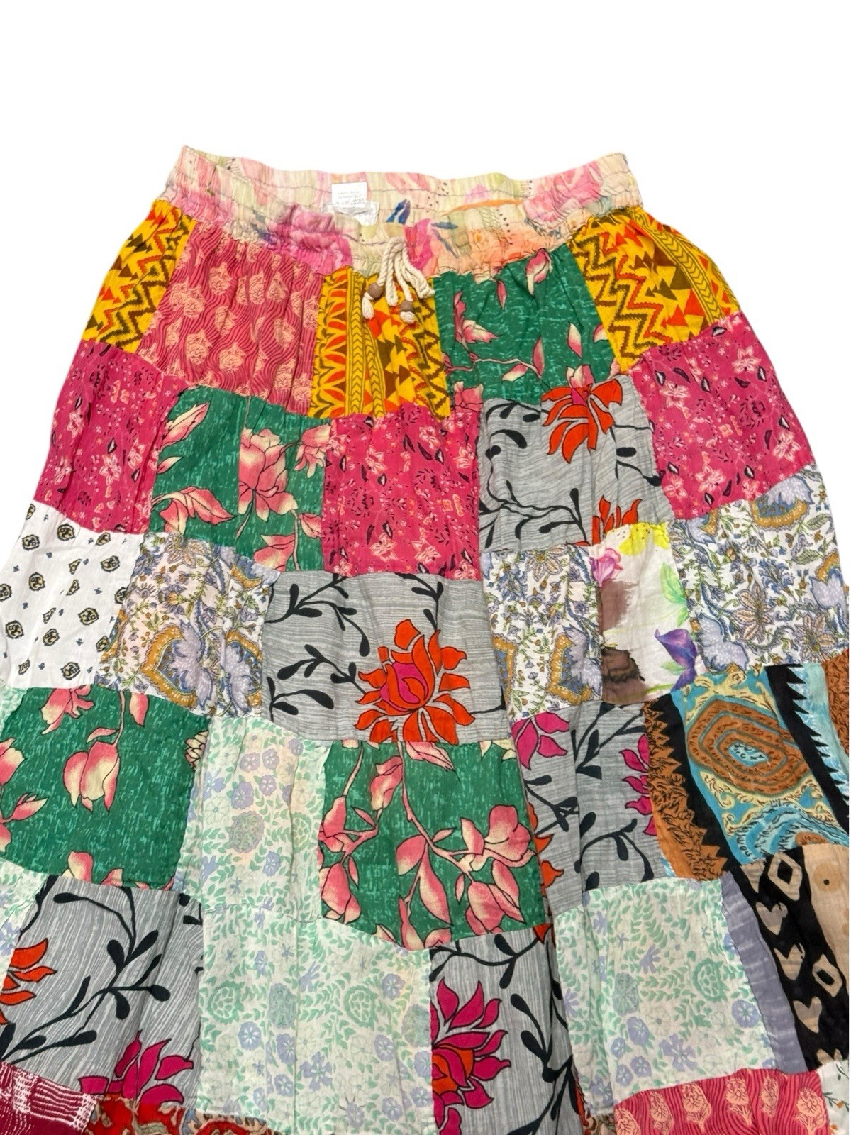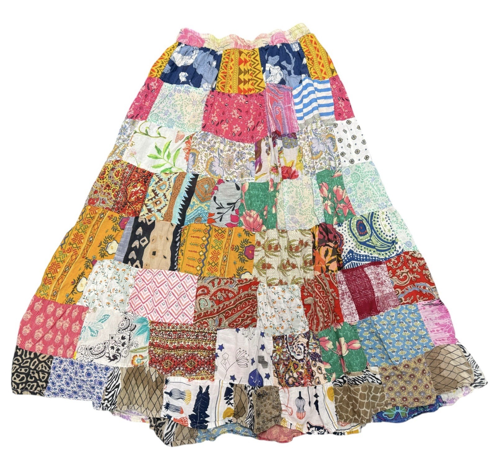 Patchwork Boho Maxi Skirt Cotton Festival Hippie One Size S-M Colorful