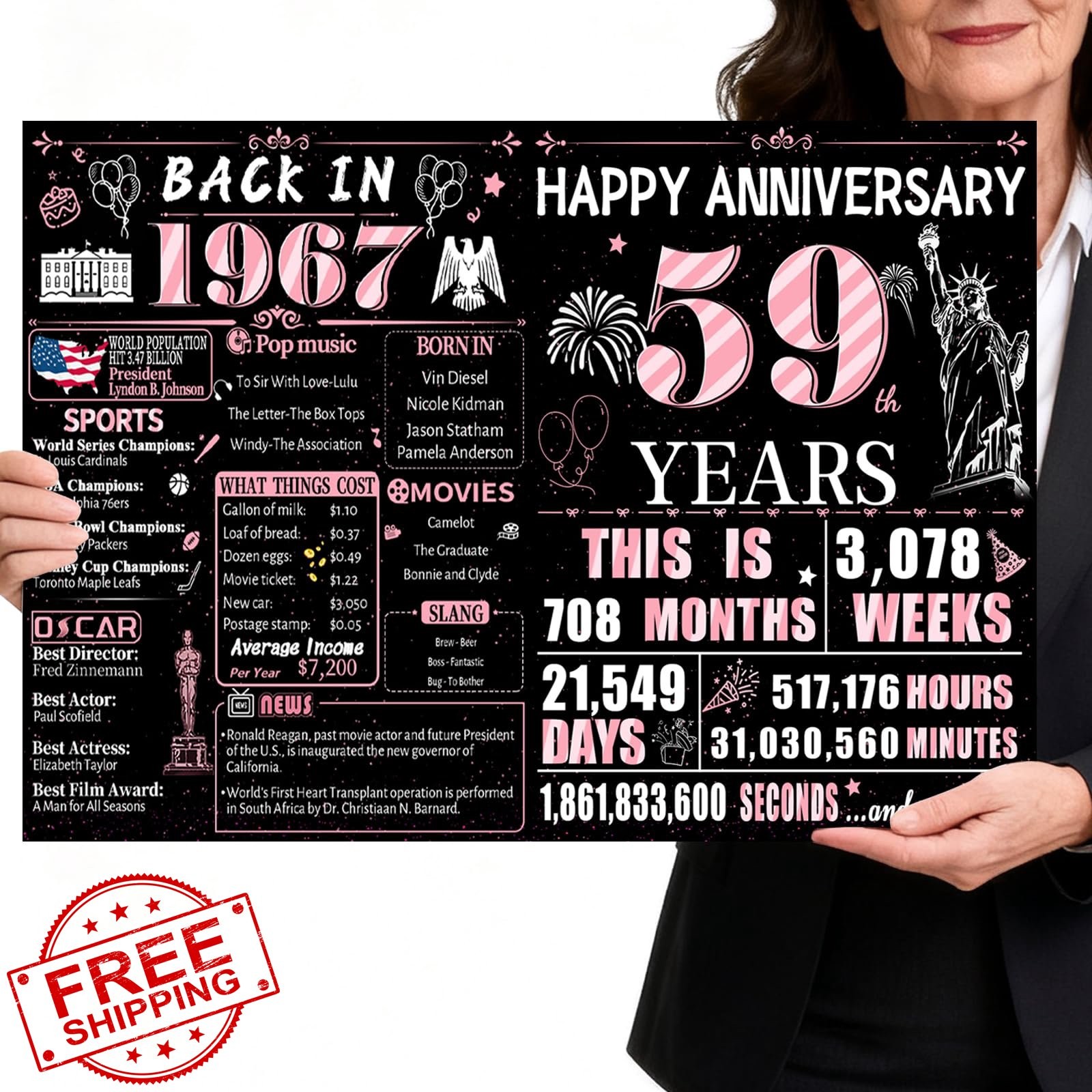 VivaGem 59th Anniversary Card - Linen Wife Gift