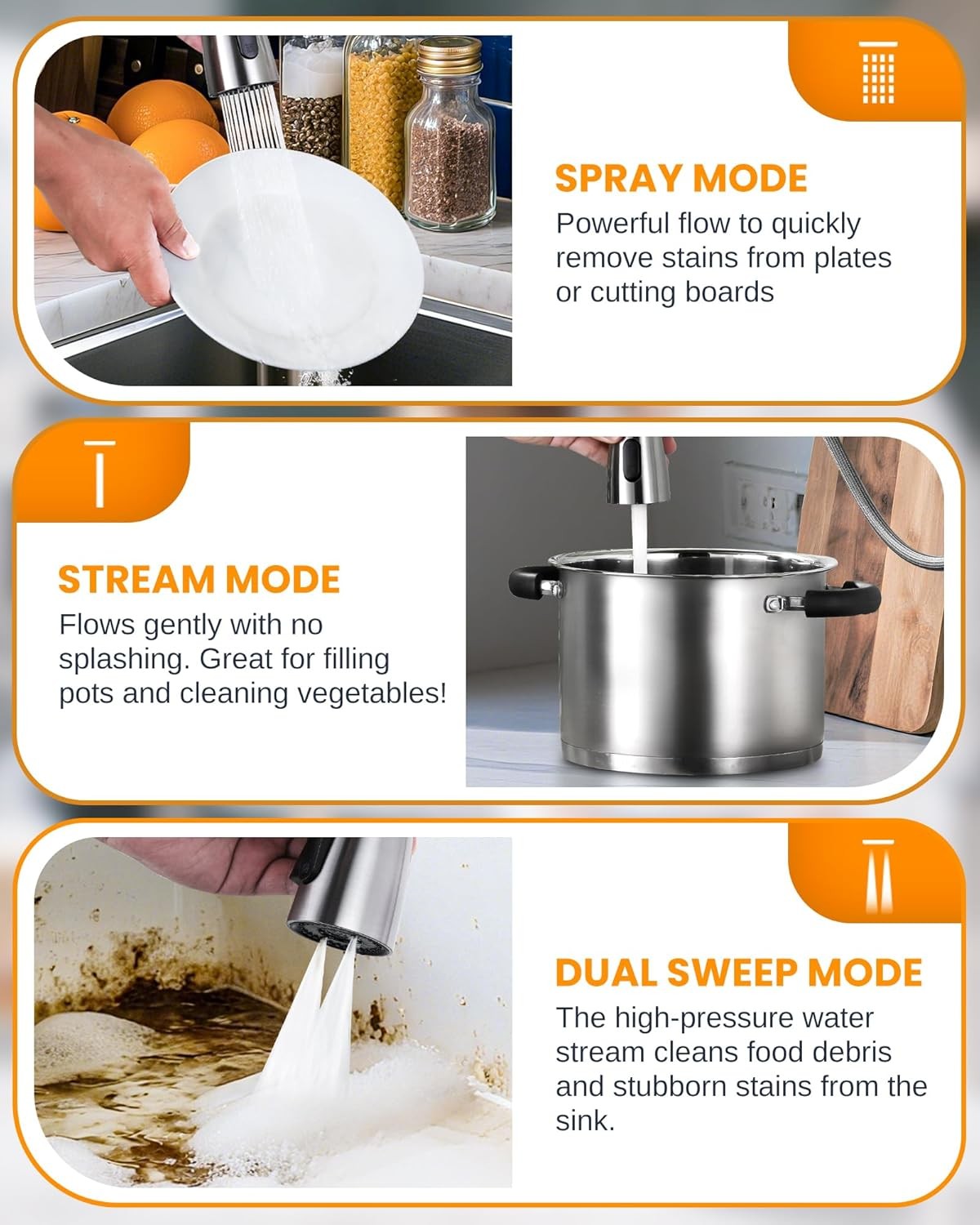3 Hole Kitchen Faucet with Sprayer - 304 Stainless Steel Kitchen Sink Faucet