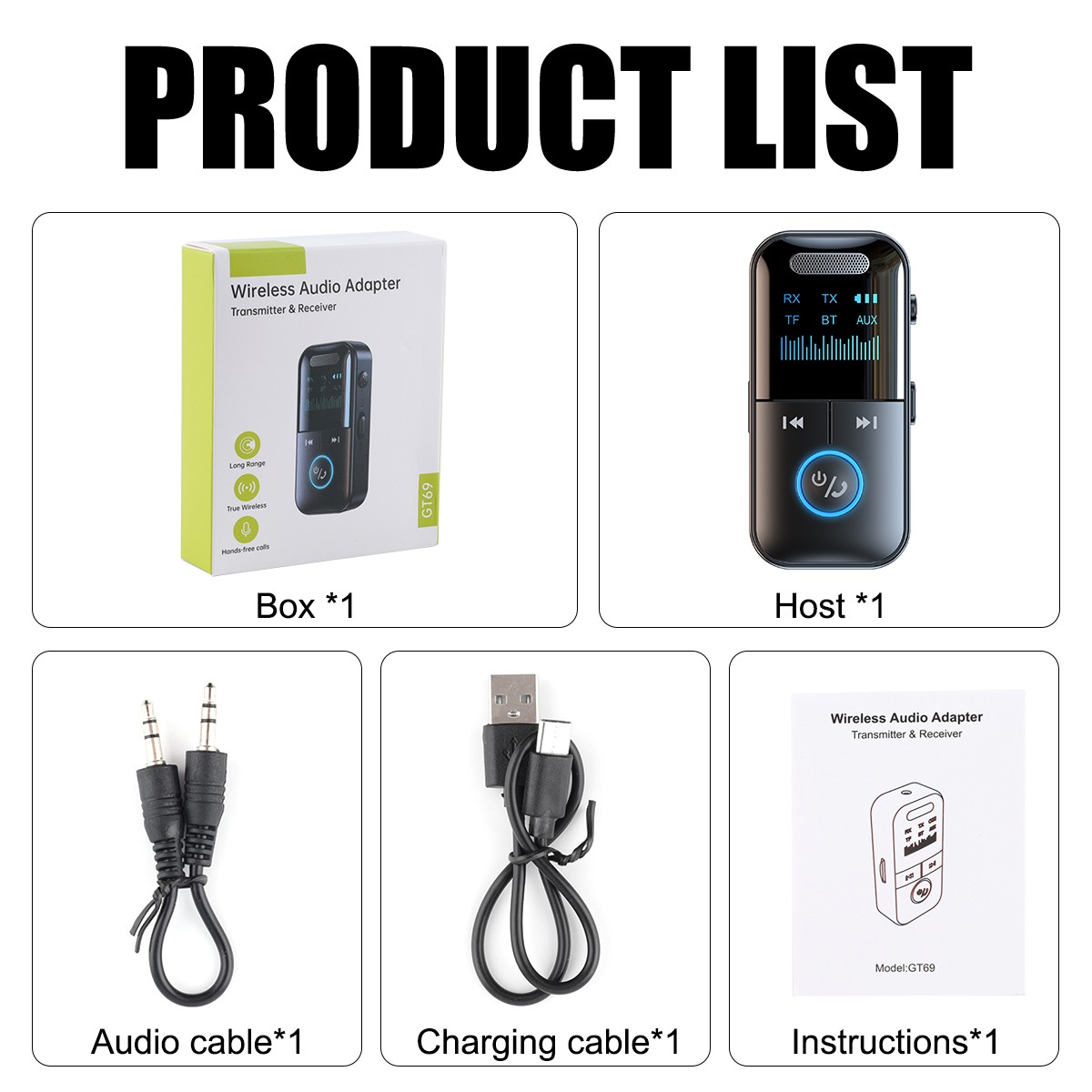 GT69 Long-lasting battery life Digital Display 4-in-1 Bluetooth Adapter for MP3
