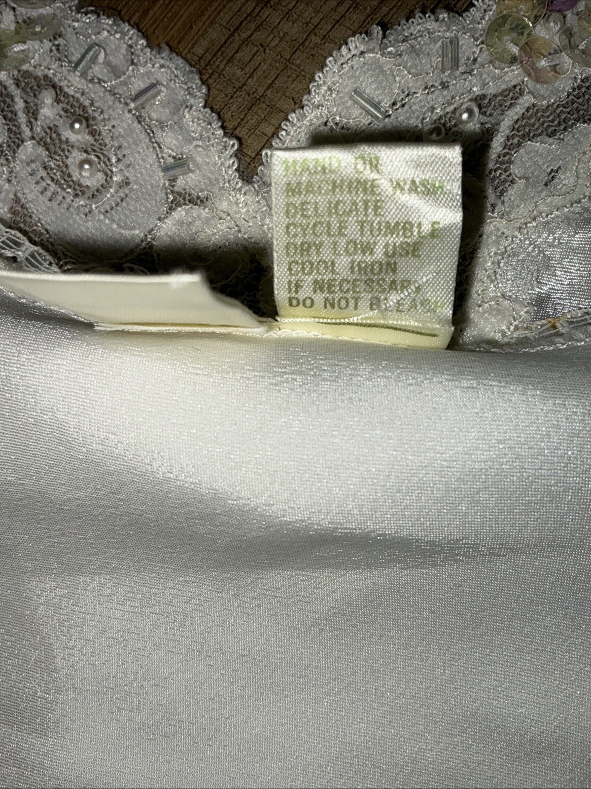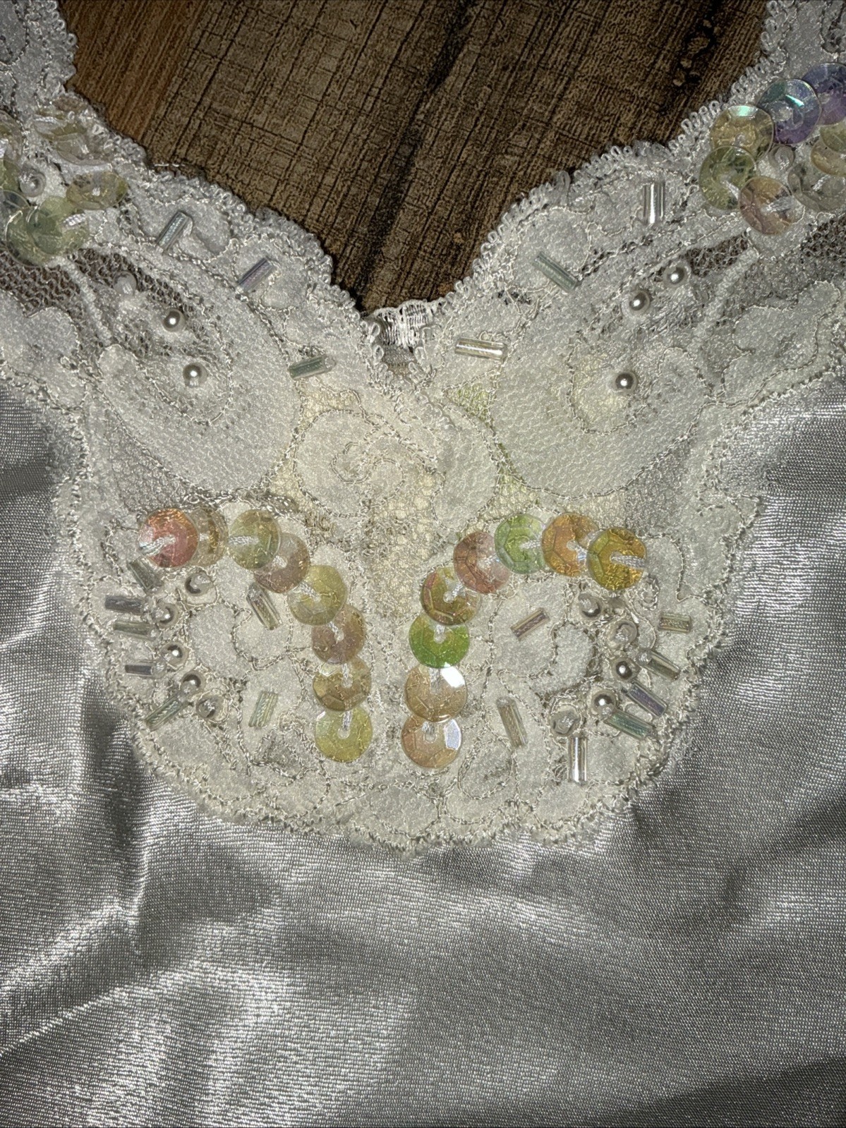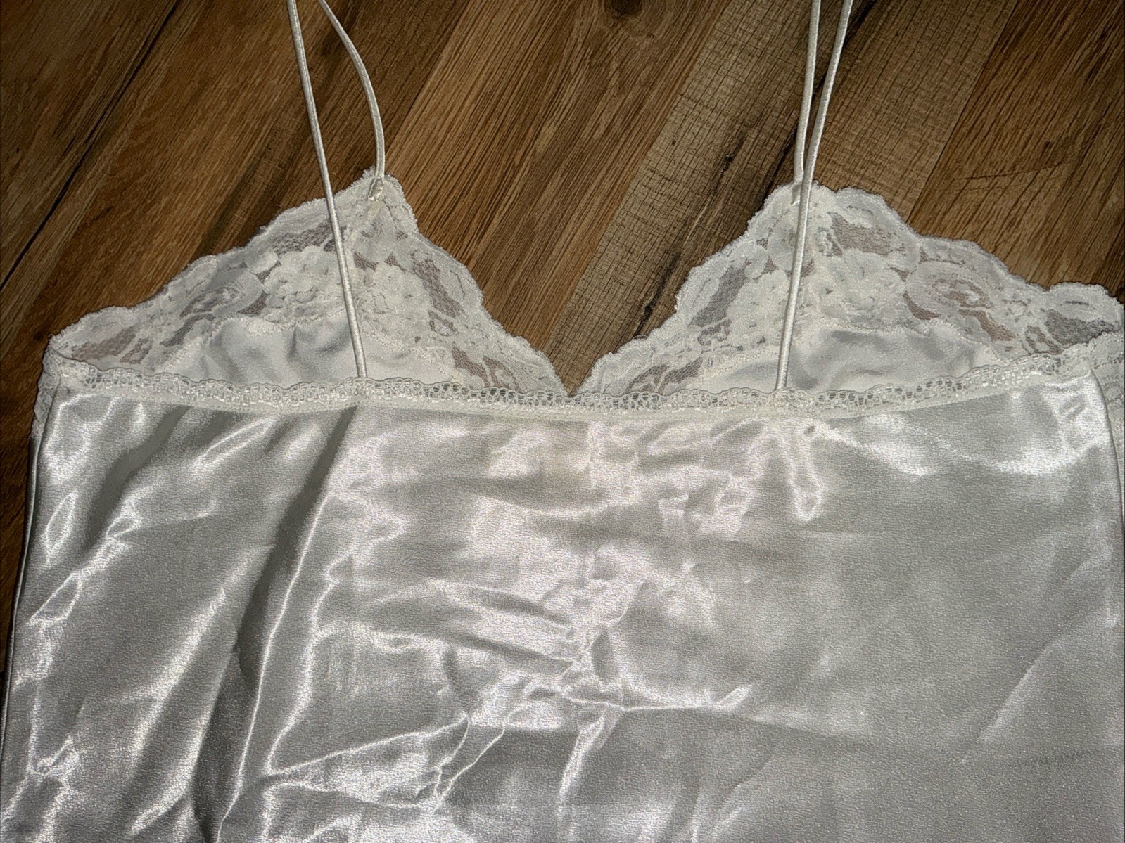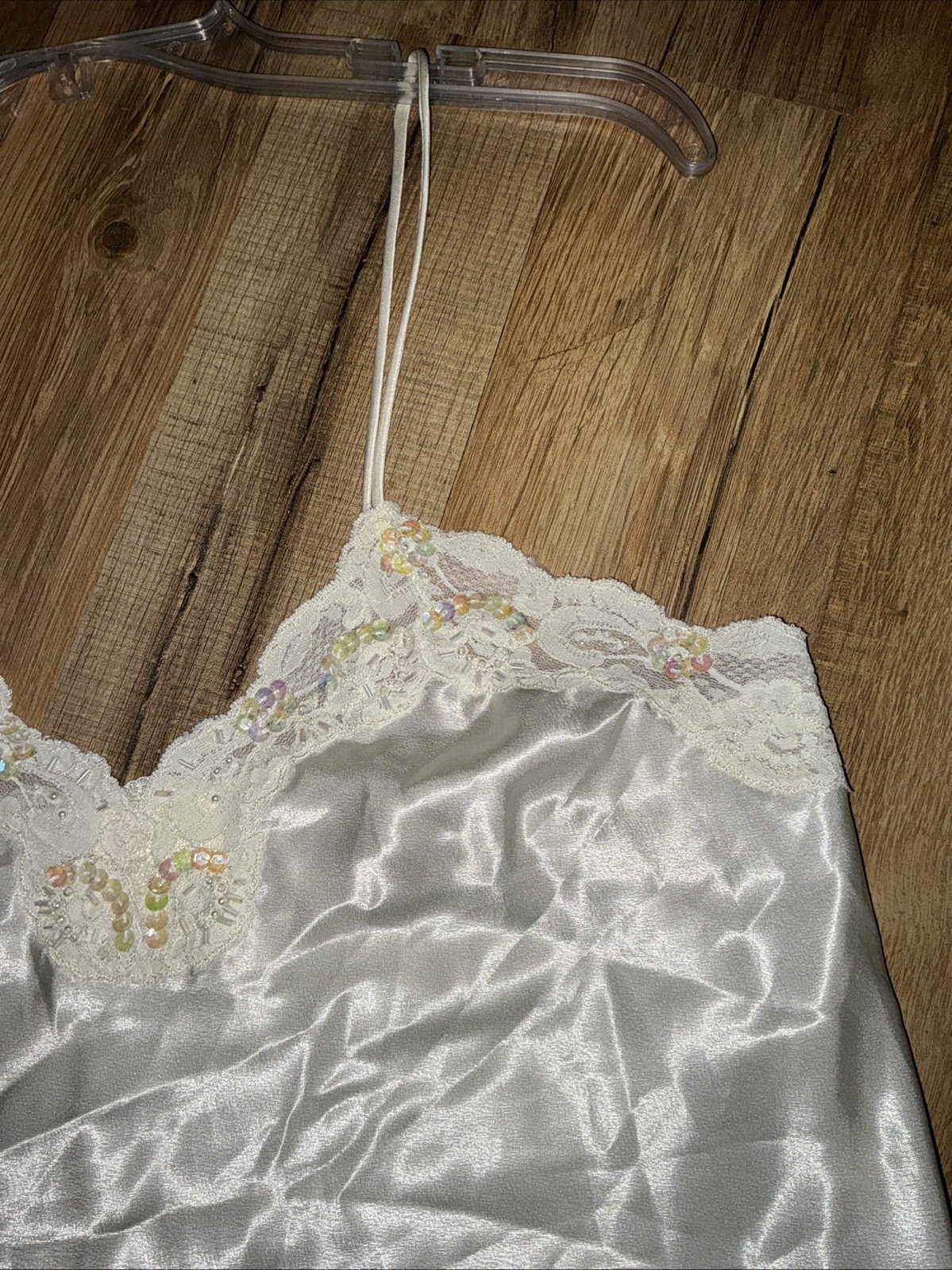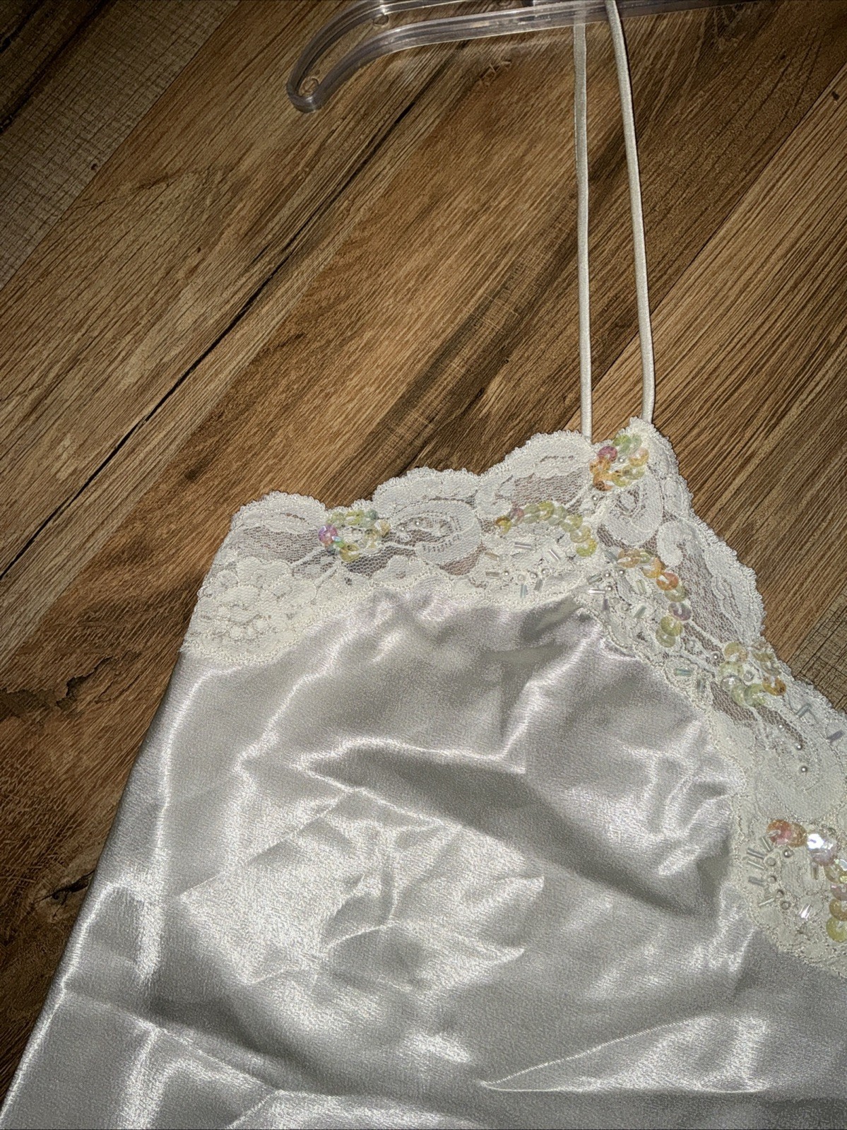 как выглядит VTG Victoria s Secret Gold Label Camisole Top Ivory Satin Sz SMALL Sequins Lace фото