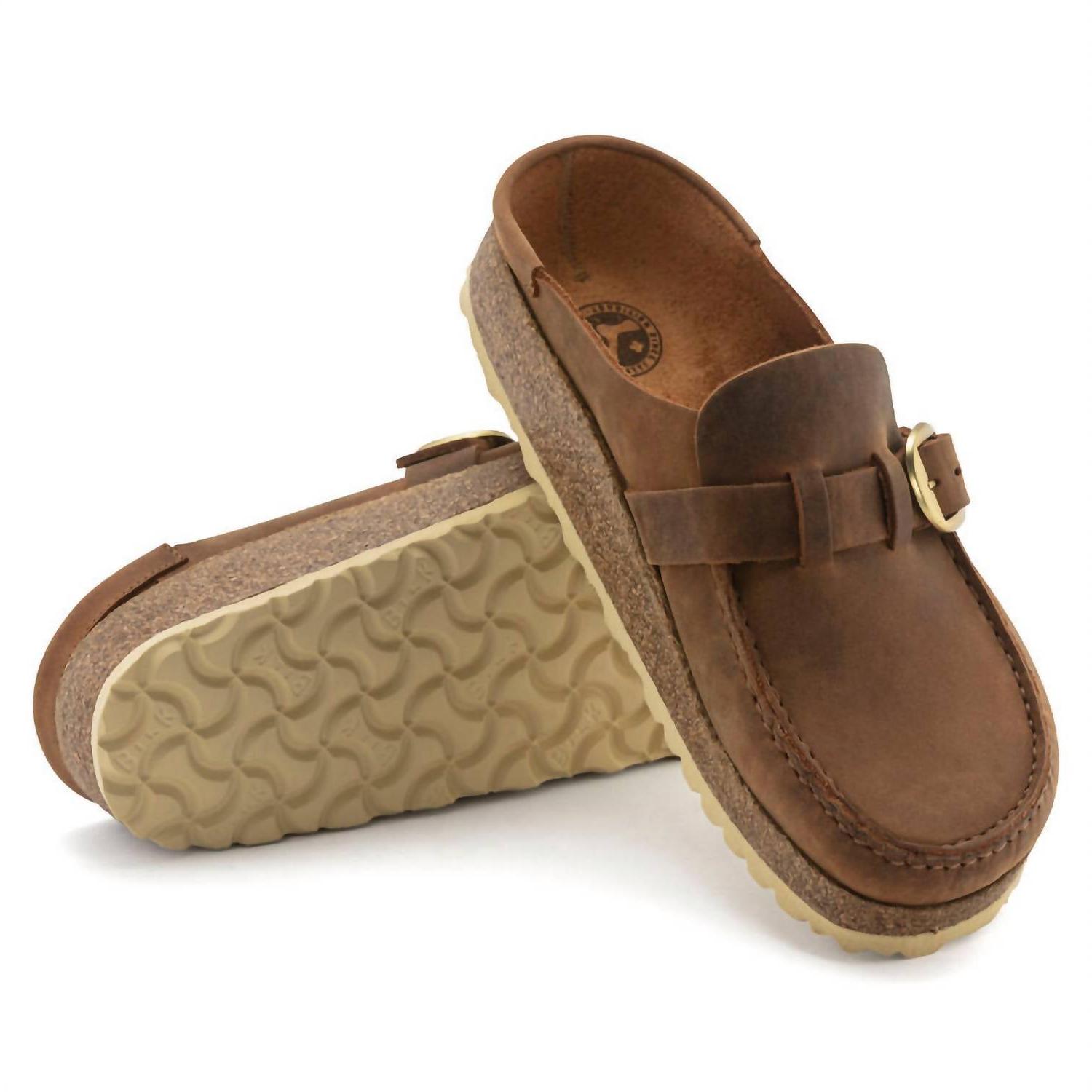 как выглядит Birkenstock Womens Buckley Oiled Leather Clog Cognac фото