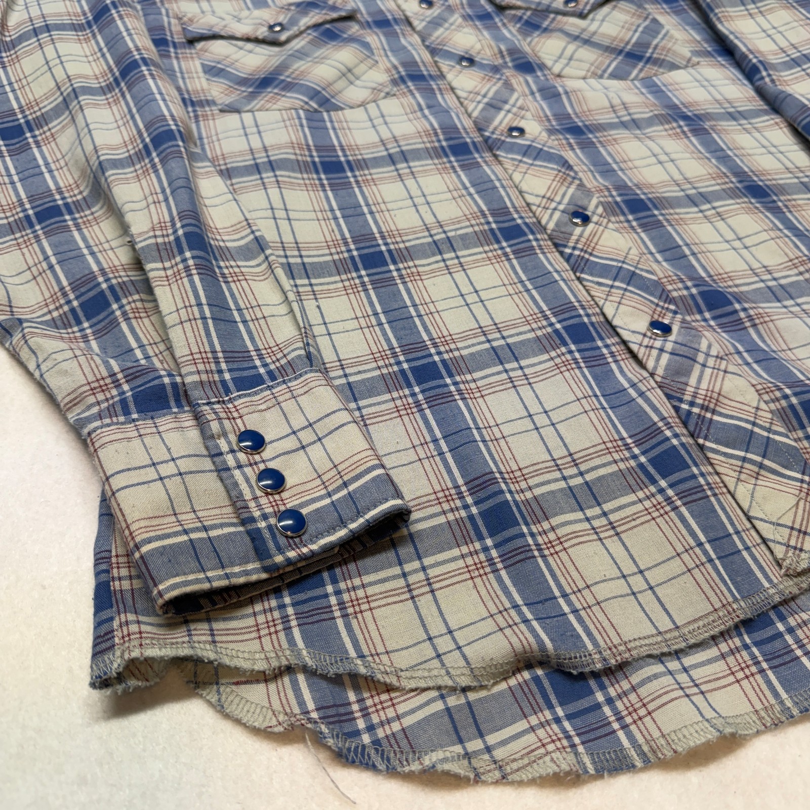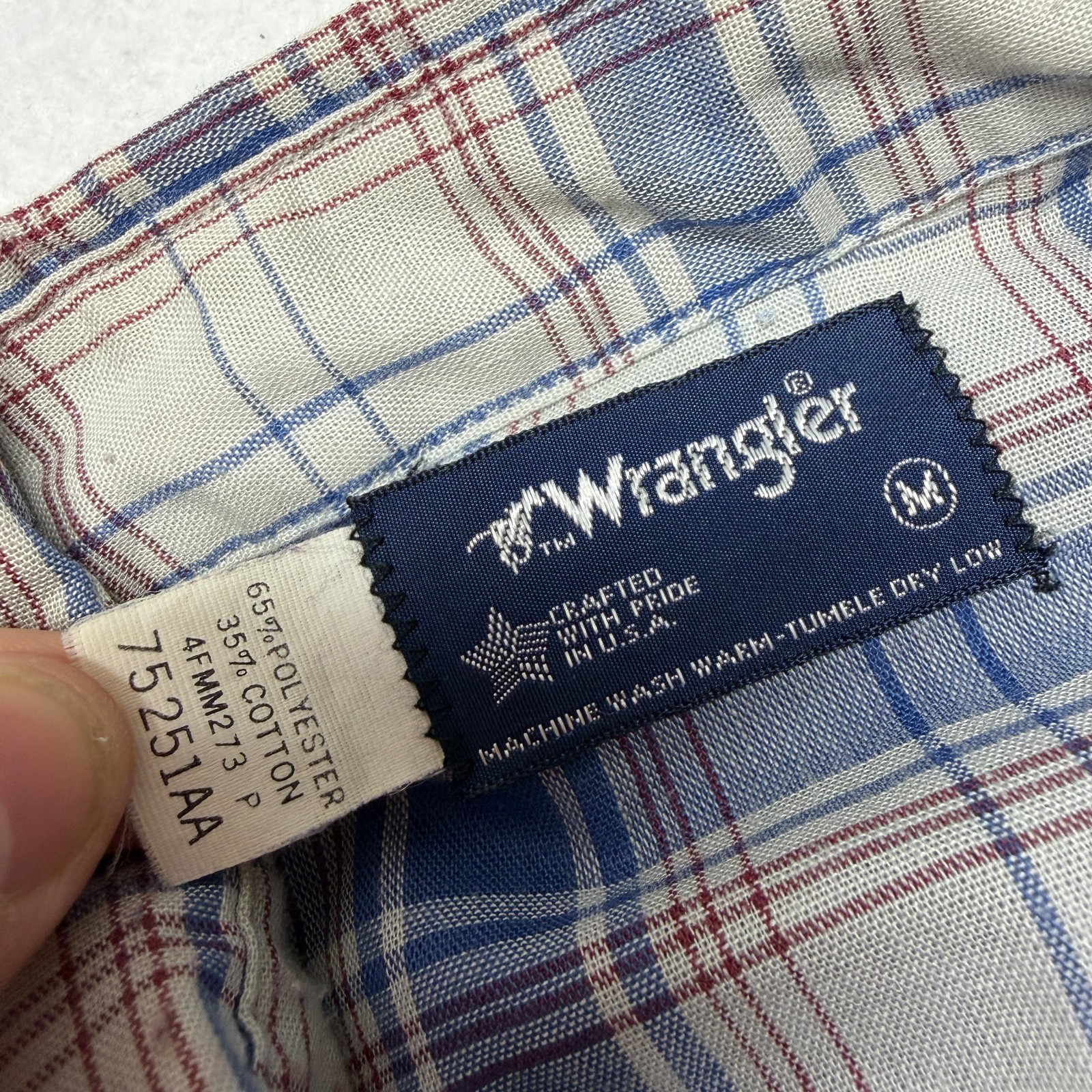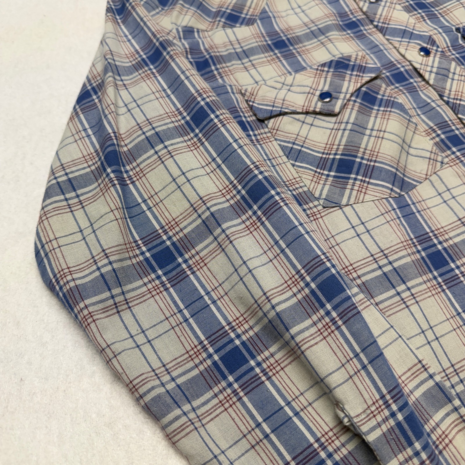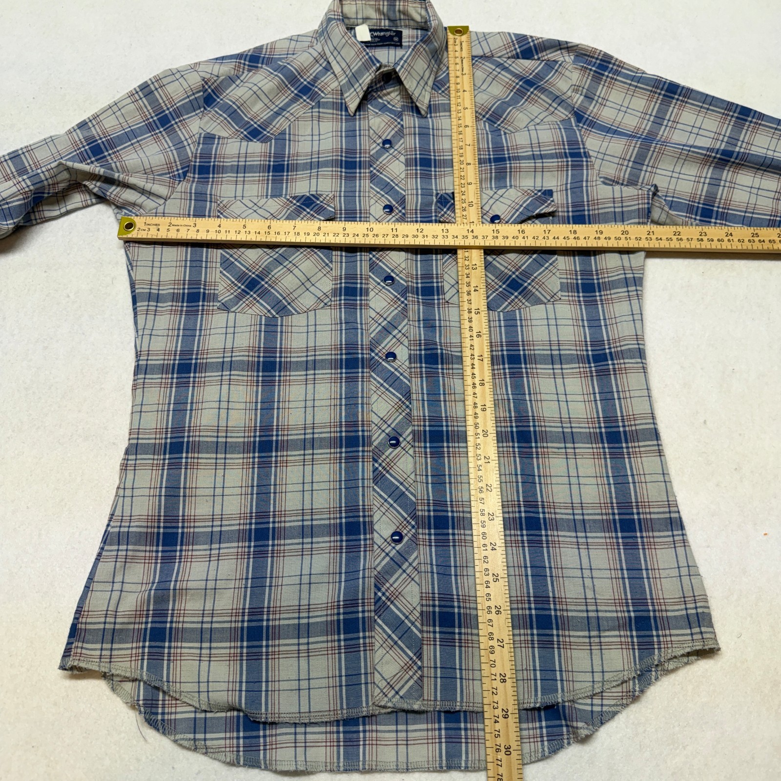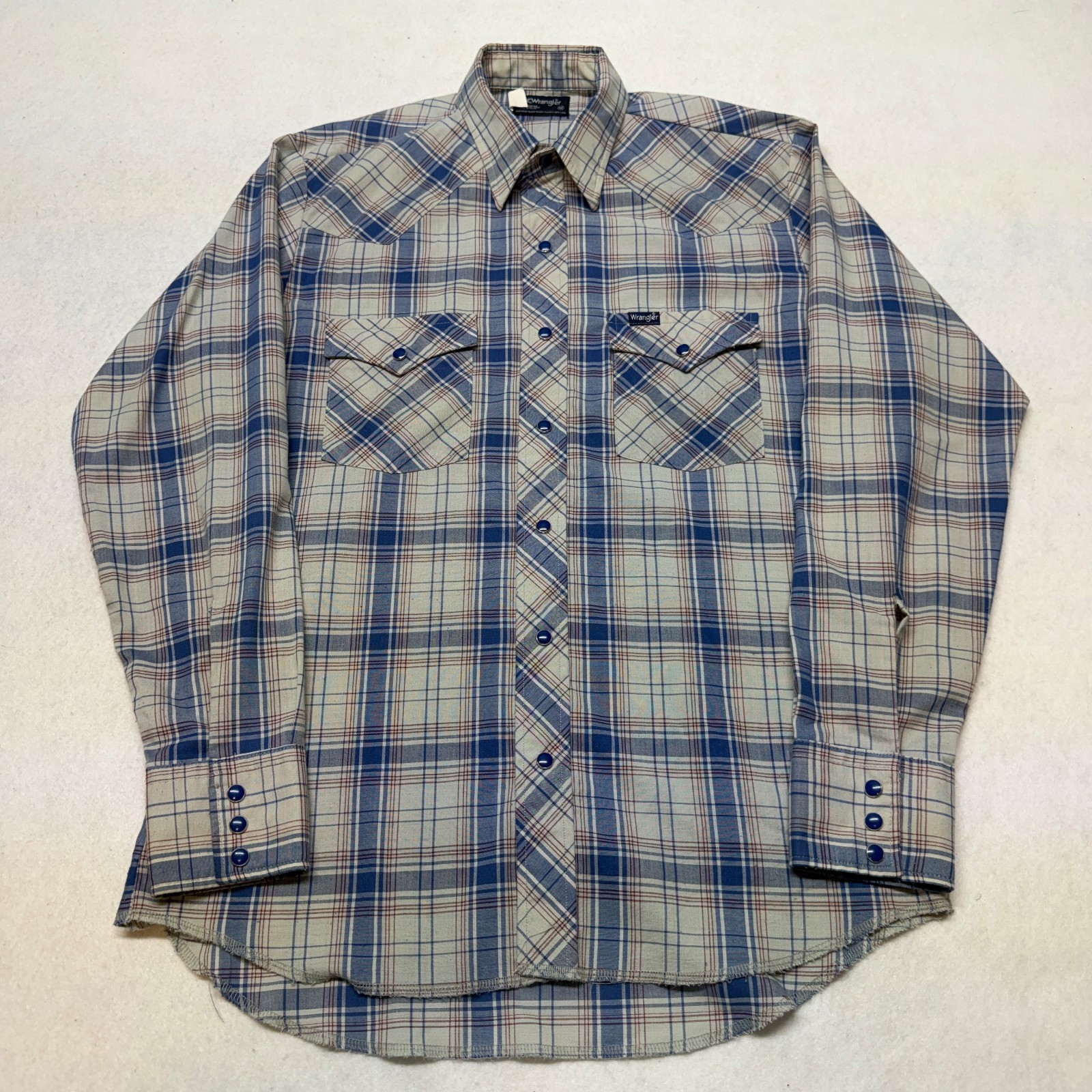 как выглядит VTG 80s Wrangler Pearl Snap Shirt Plaid Long Sleeve Western Shirt Medium USA фото