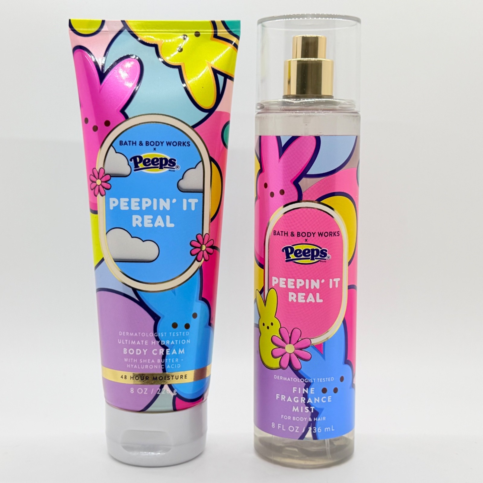 Bath Body Works PEEPS Peepin' It Real Fine Fragrance Mist Body Cream Set 8oz