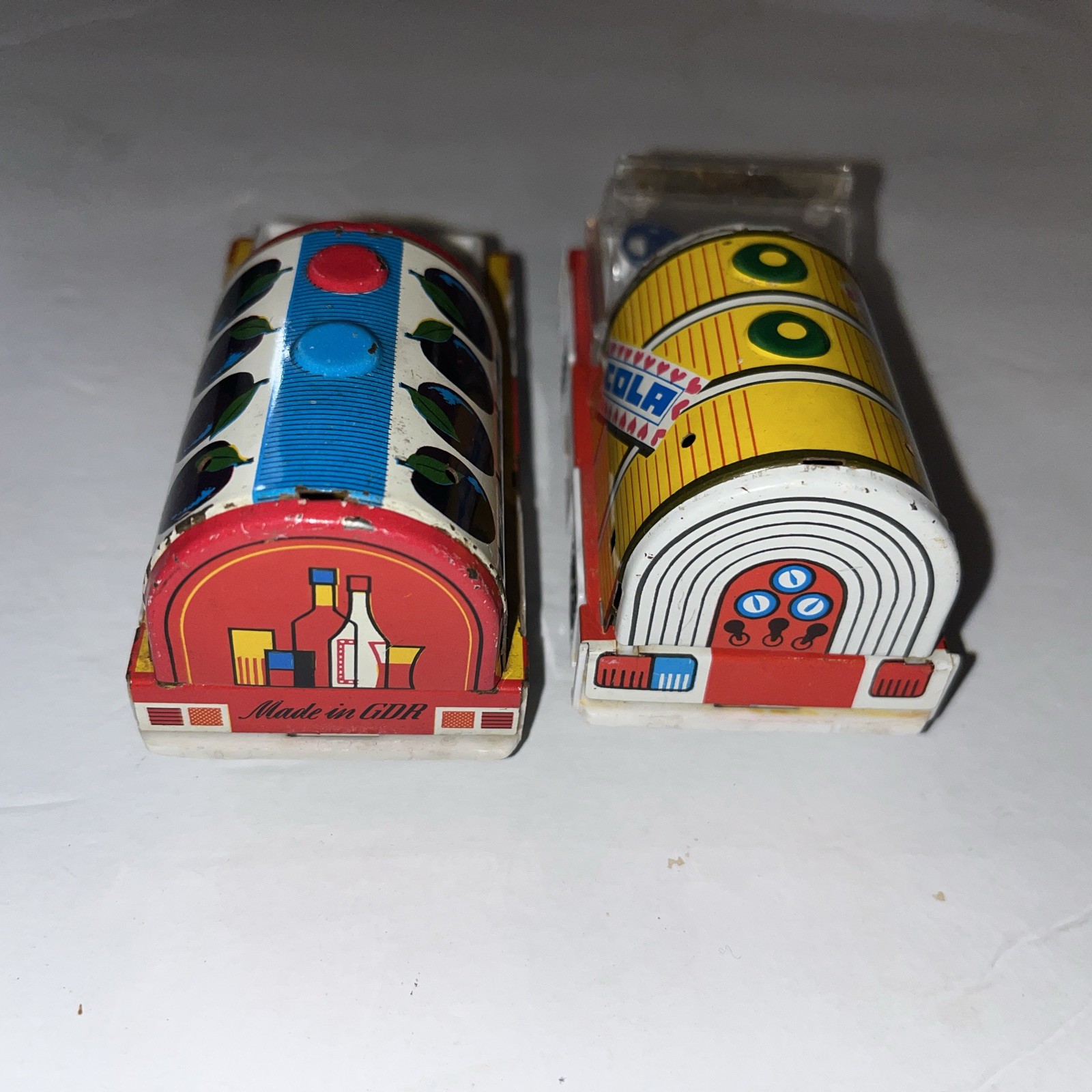 как выглядит 2 VINTAGE 5 TIN CAR TOYS. фото