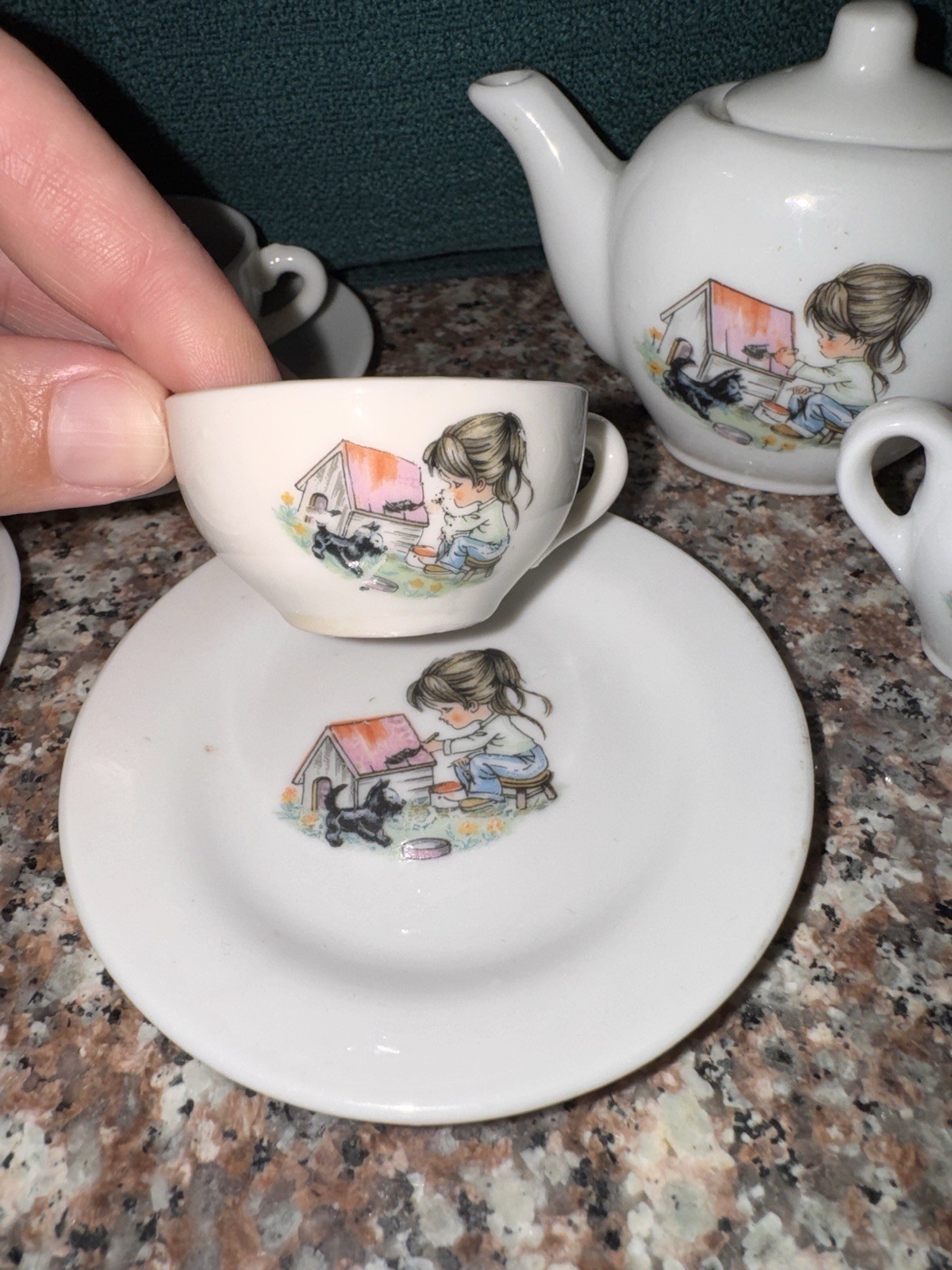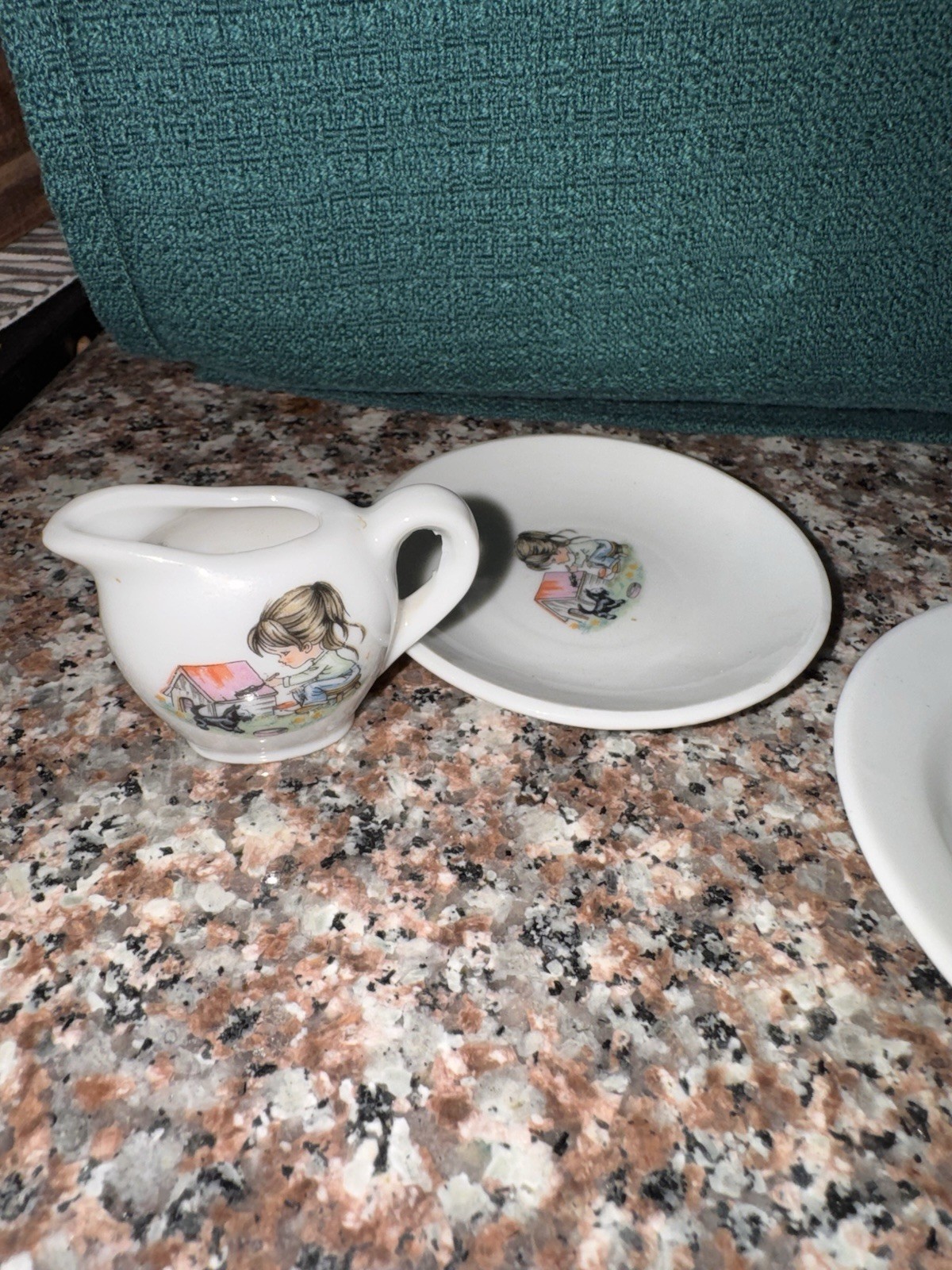 Vintage Made In Japan Miniature Child Tea Set Girl Cat Porcelain