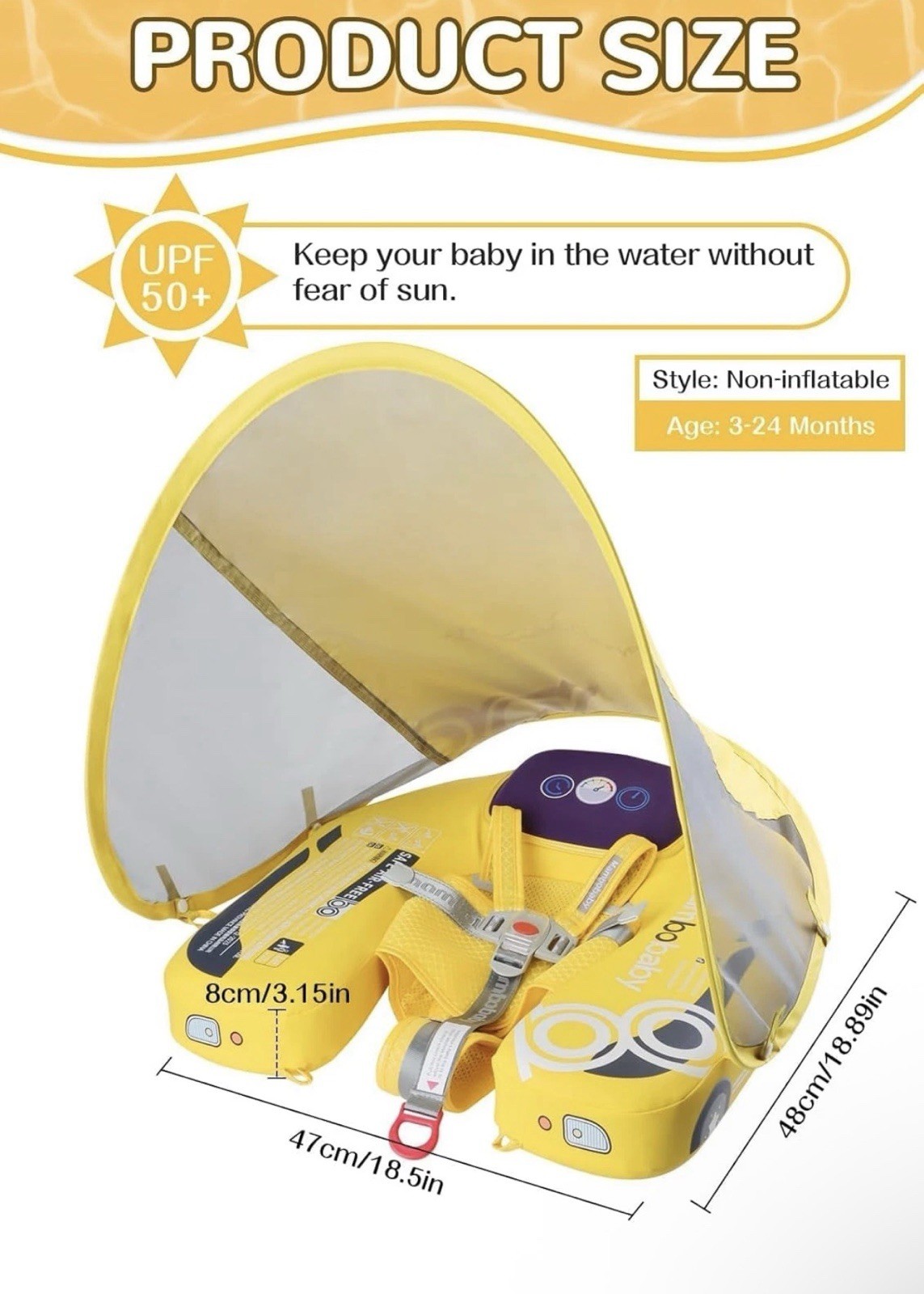 Mambobaby Non-Inflatable Baby Pool Float w/ Canopy Harness 3-24 Months