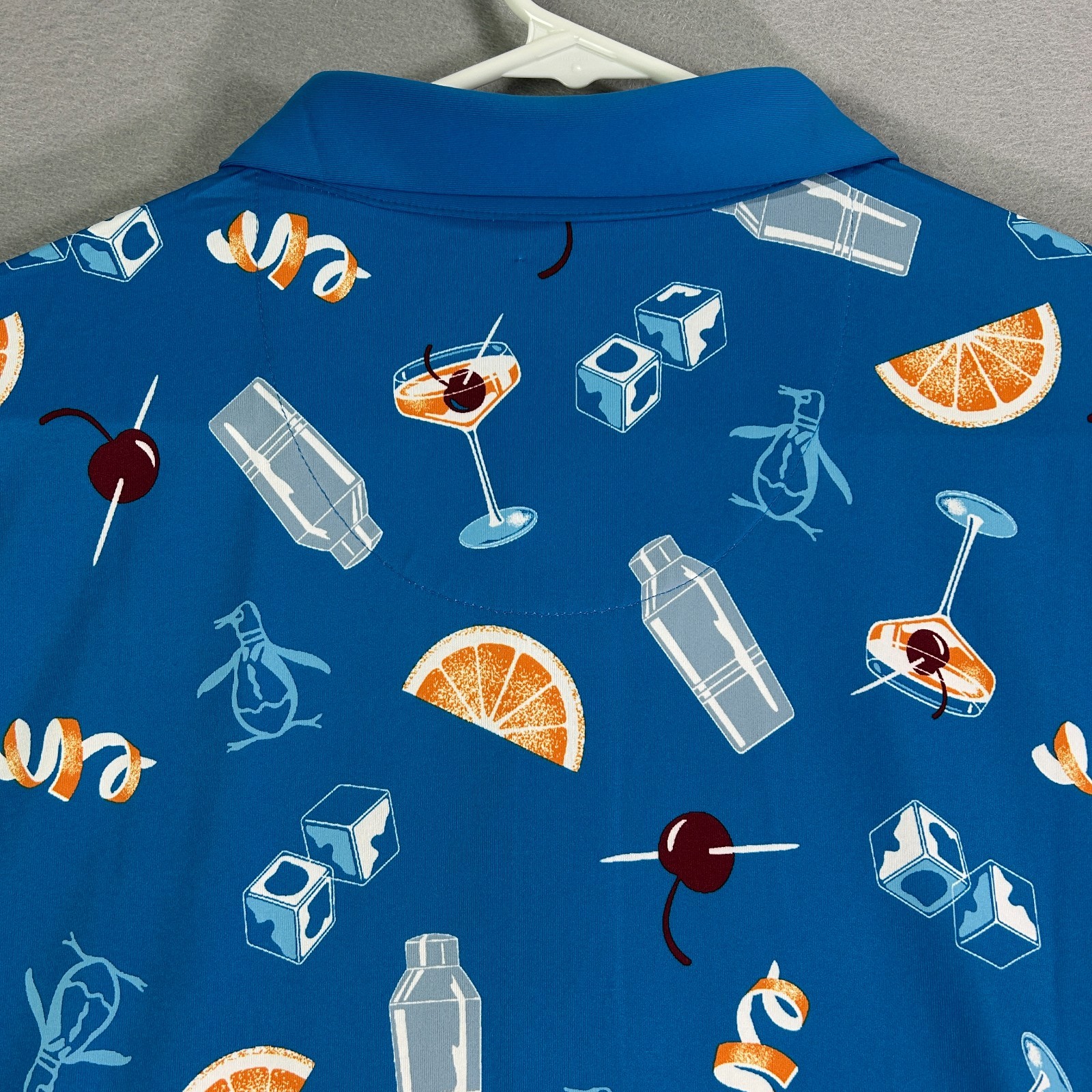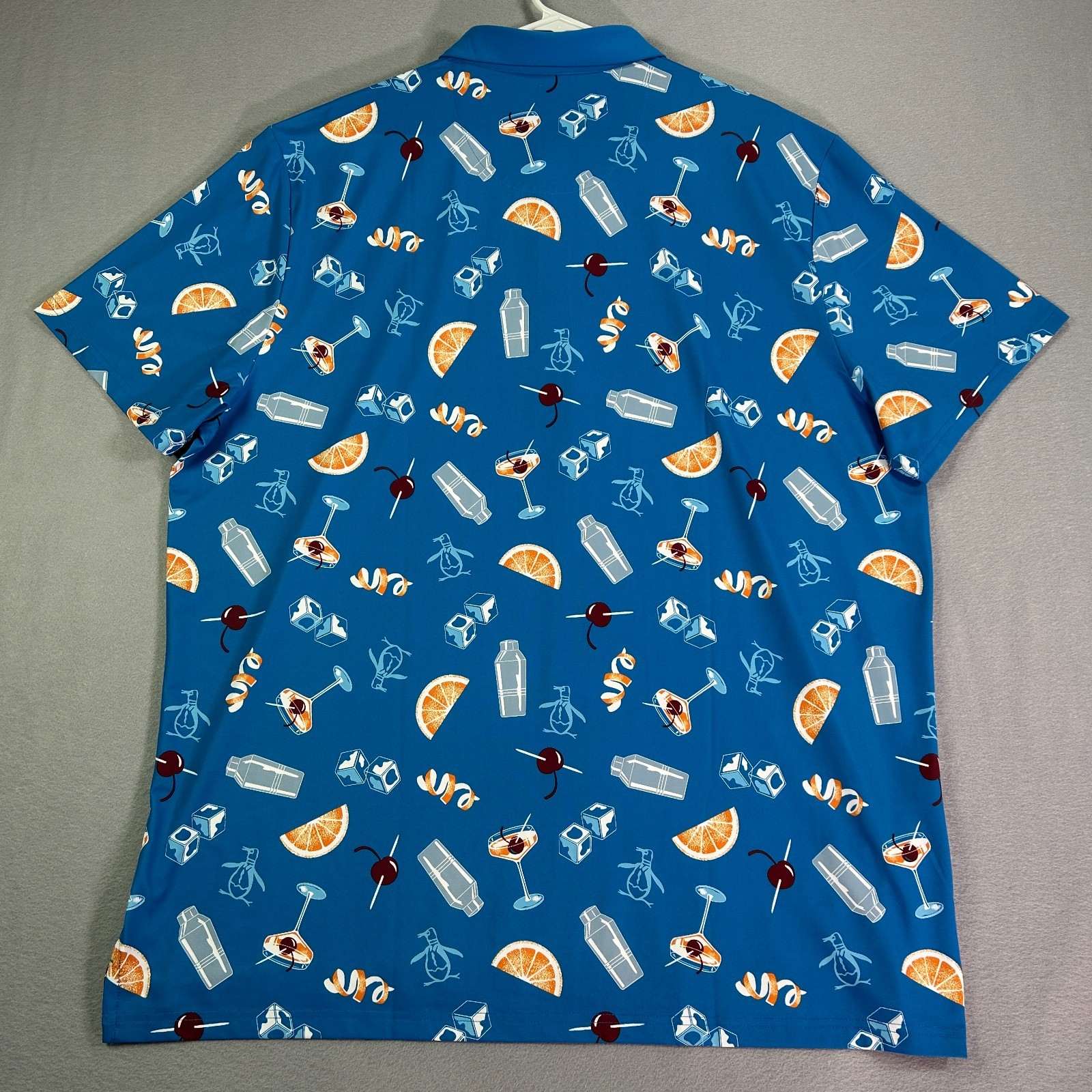 как выглядит Original Penguin Mens Shirt 2XL Blue Golf Polo Performance Cockails AOP Stretch фото