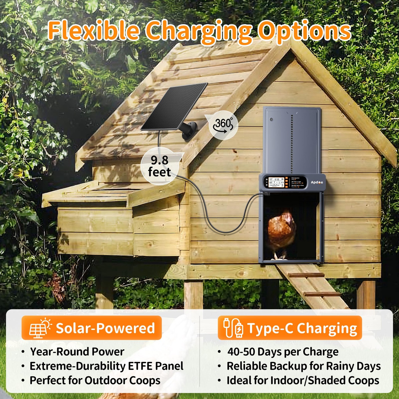 • Automatic Chicken Coop Door Solar Powered with Timer, Light Sensor, Remote Contr