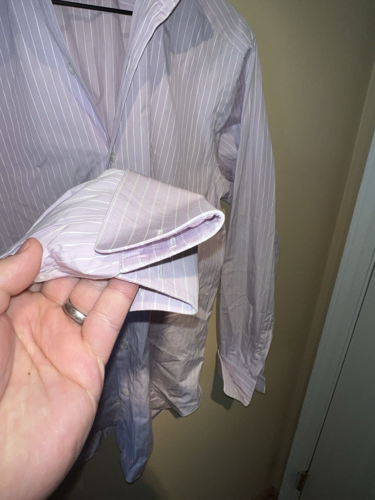 как выглядит Brioni Satin Stripe Purple French Cuff Dress Shirt Men s 41/16 Cotton Italy фото