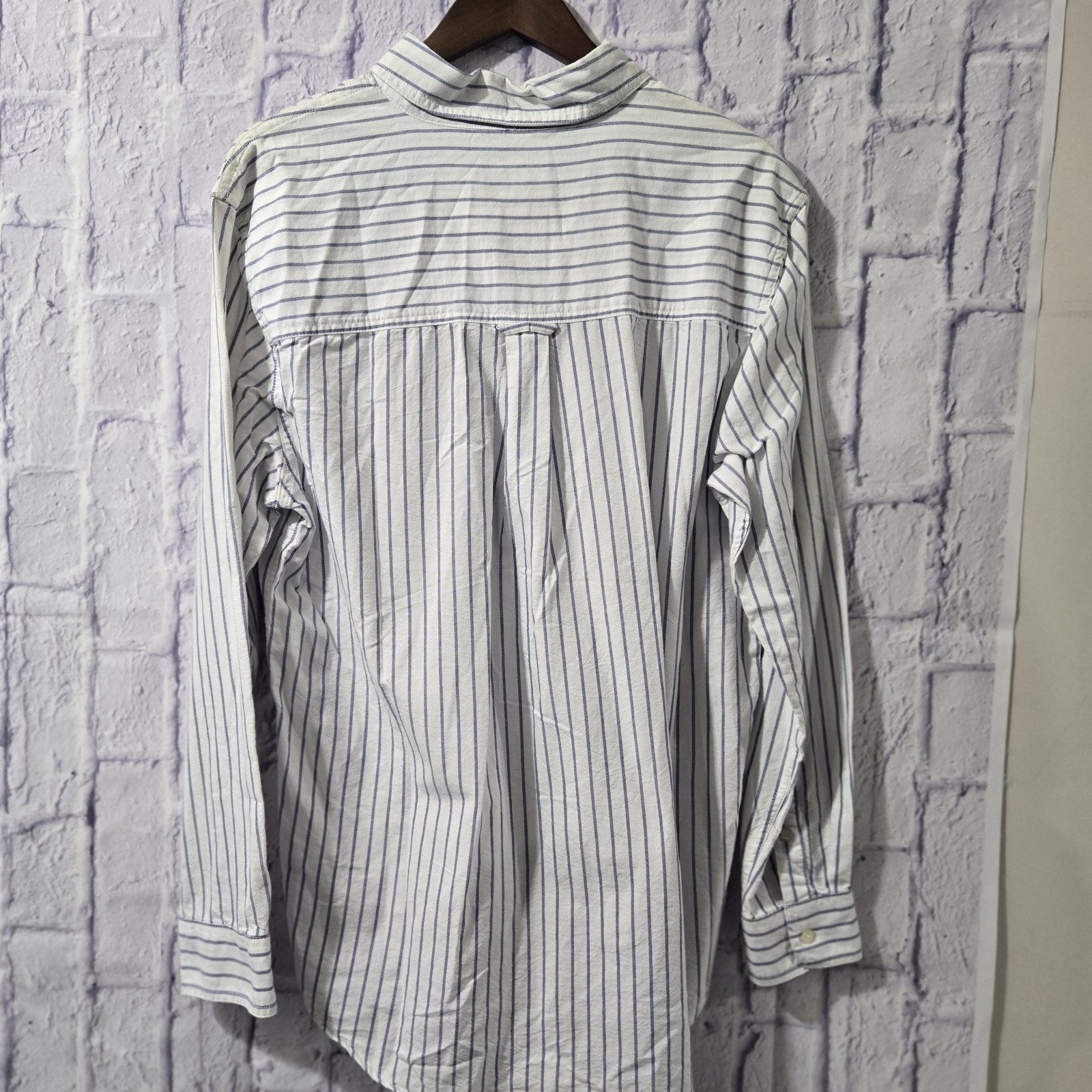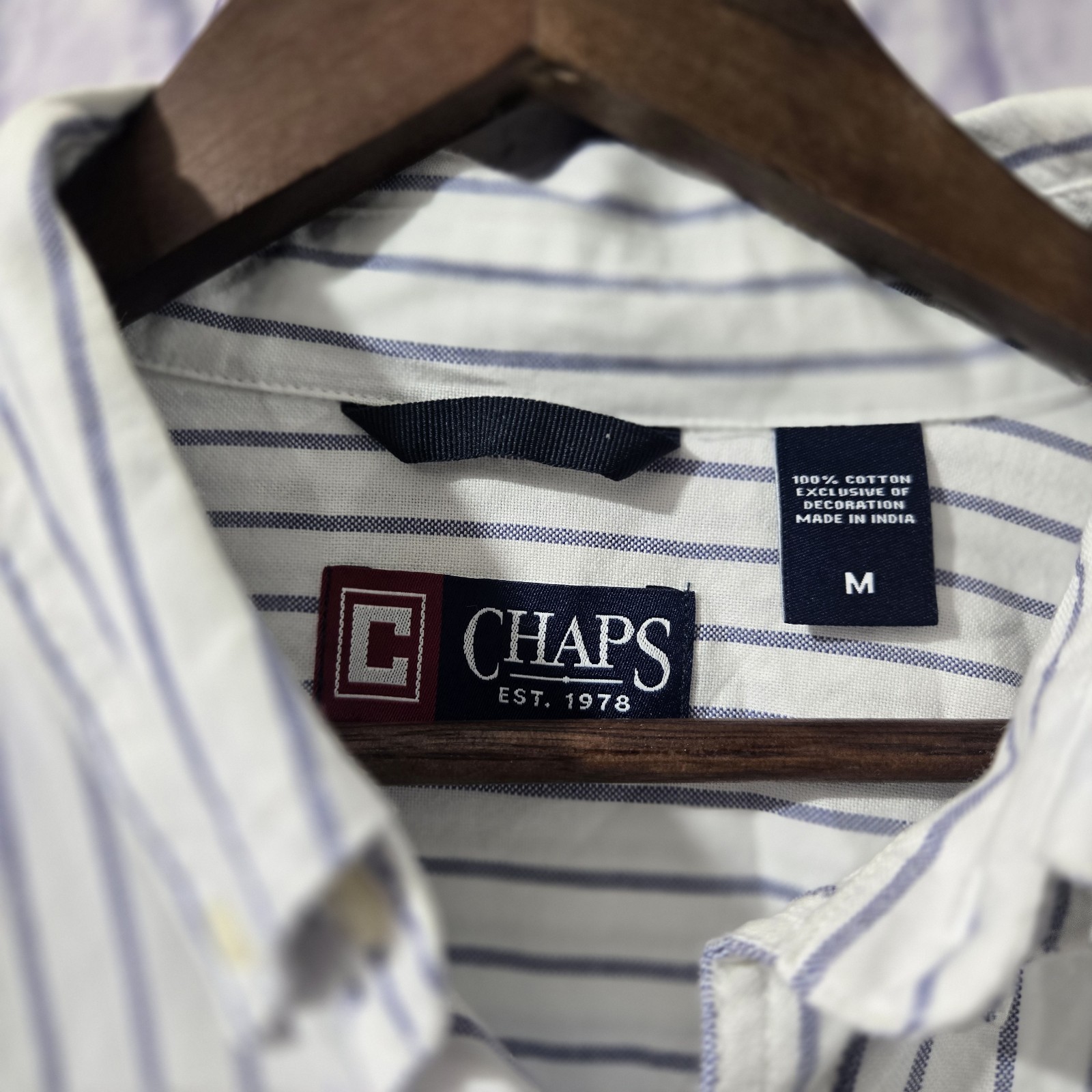 как выглядит NWT Chaps Mens Classic-Fit Oxford Shirt Blue White Stripe Button Down MED фото