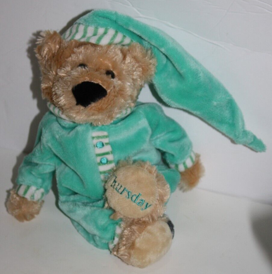 как выглядит FAO Schwarz Sleepy Time Teddies Plush Bear 10" Thursday Day Of The Week Green PJ фото