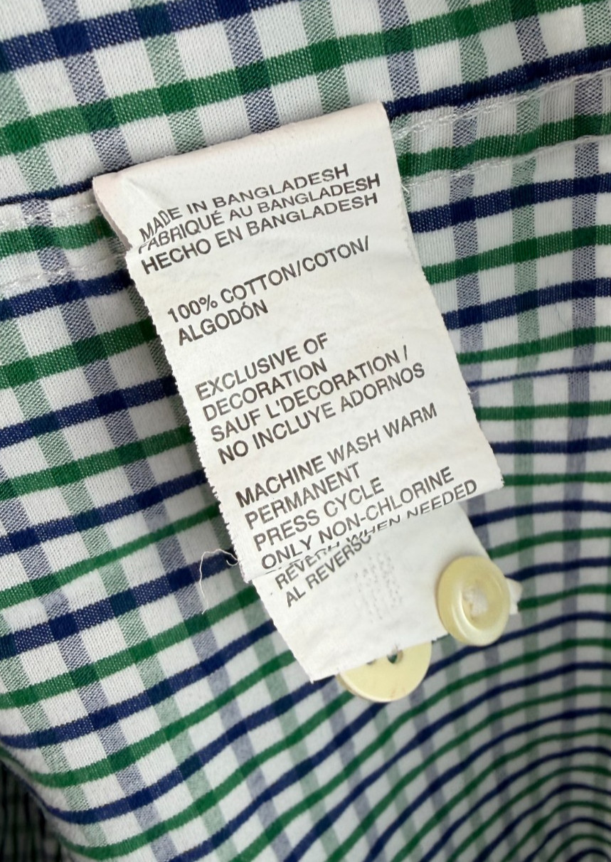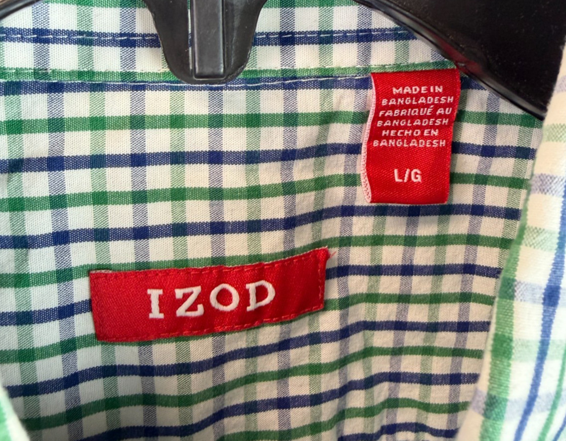 IZOD Green Blue Check Button Down Long Sleeve Shirt Men's Size Large