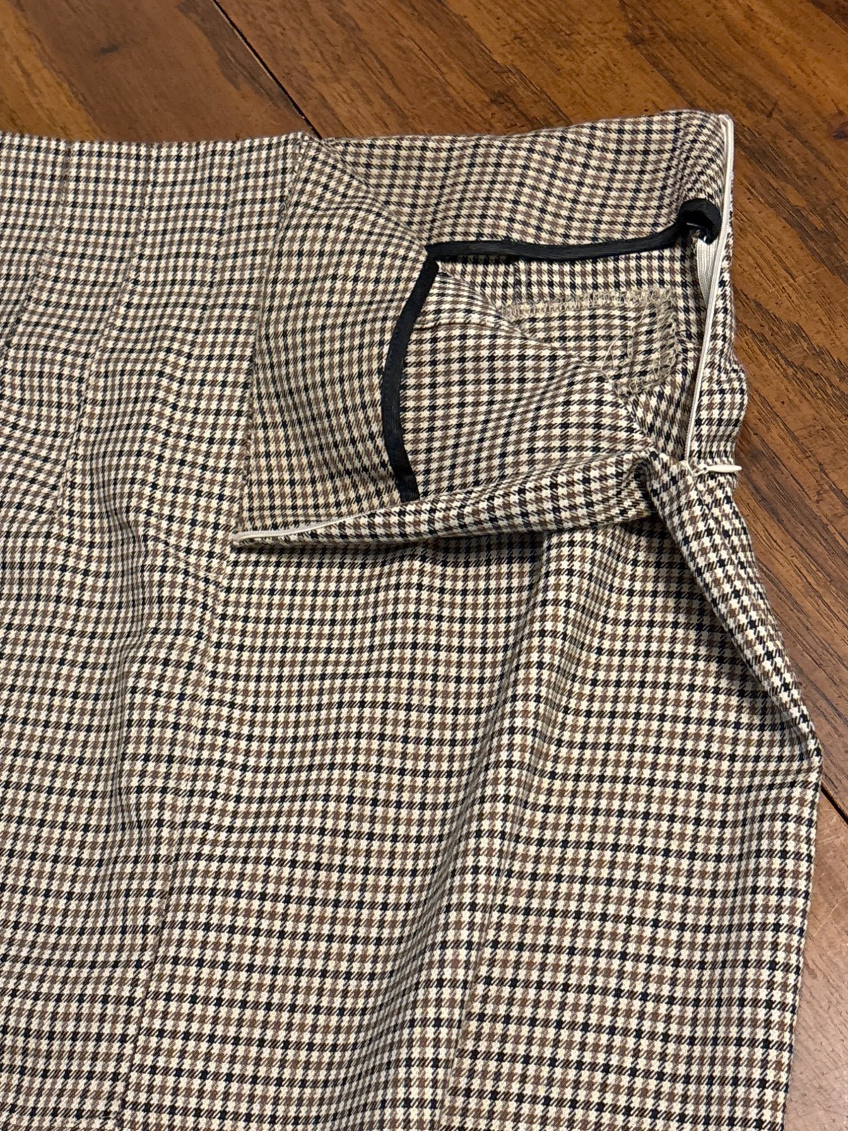 как выглядит Vintage High-Waisted Houndstooth Pencil Skirt With Front Slit фото