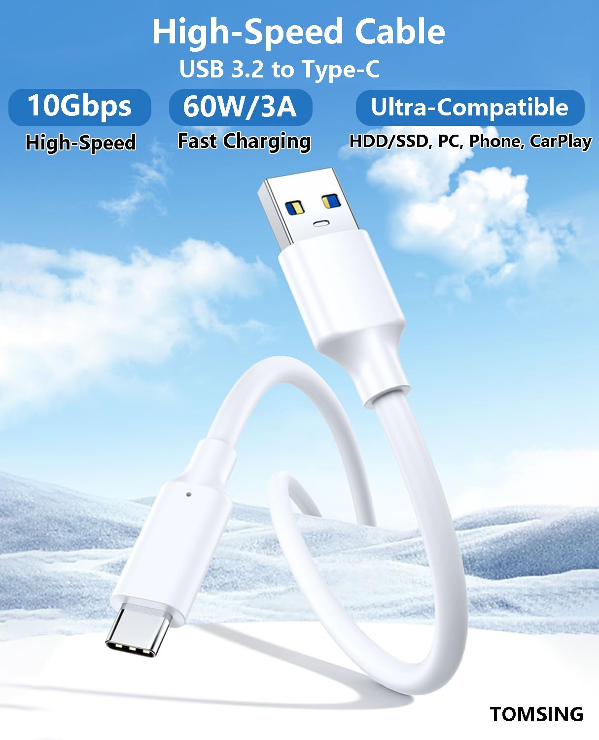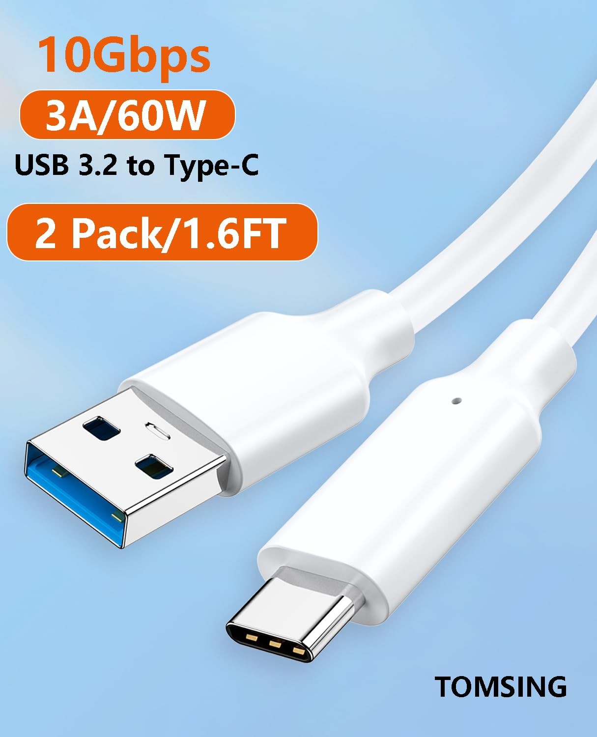 TOMSING USB to C Cable,2 Pack 1.6FT Type C Cable 1.6FT 1.6FT, White