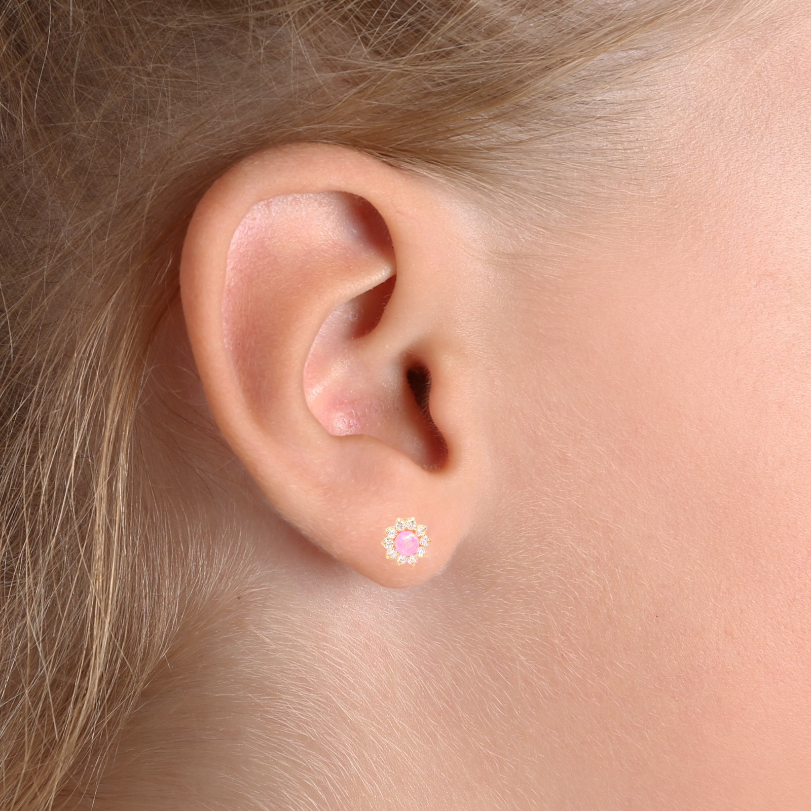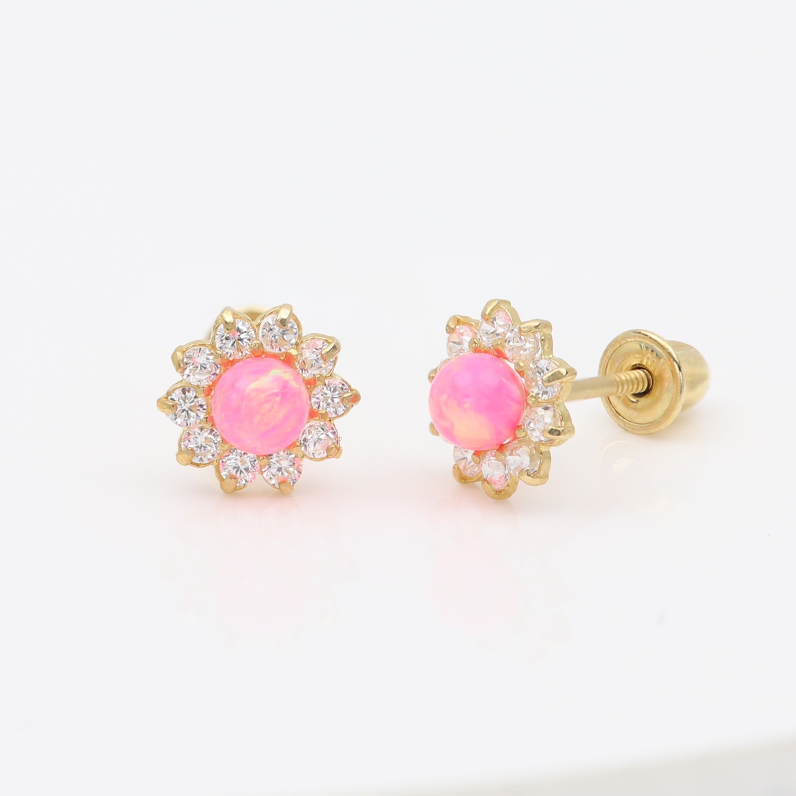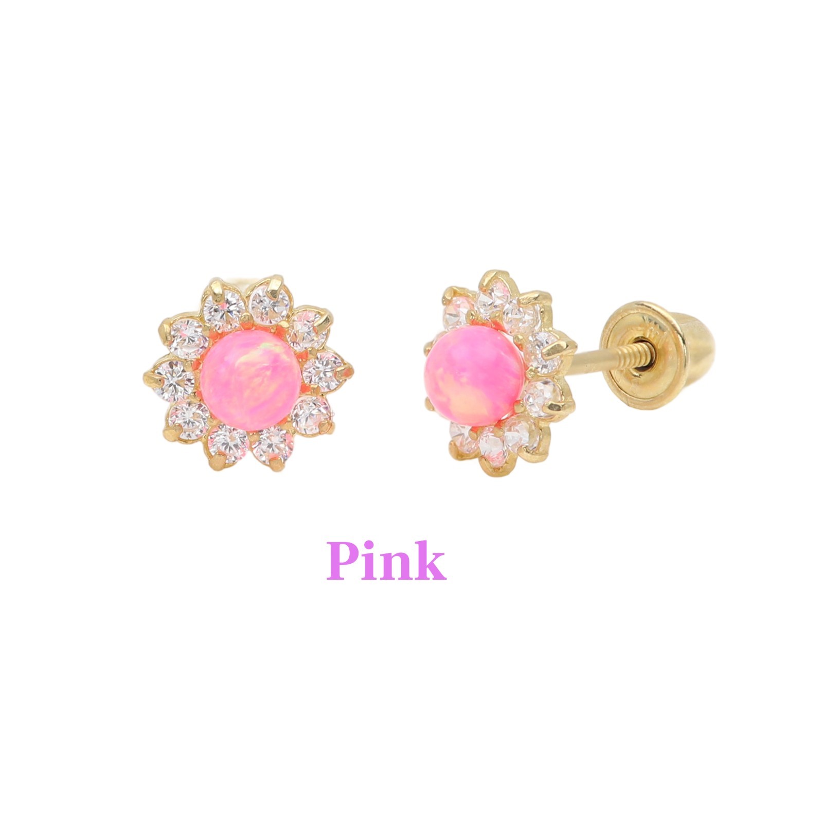 Pink Baby Earrings Solid 14k Gold Screw Protective Backs Infant Flower Earring
