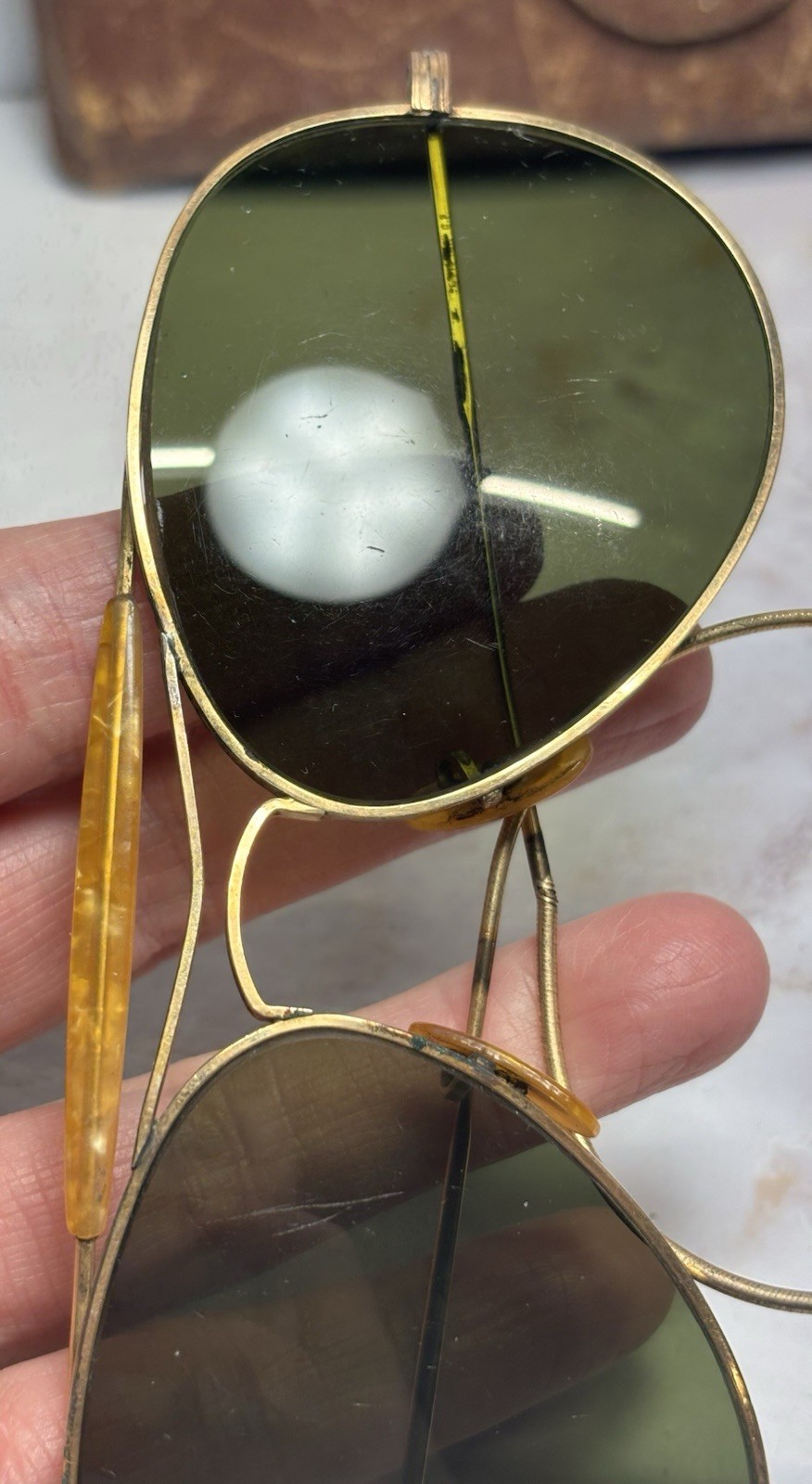 как выглядит Vintage Bausch Lomb Ray-Ban 12k Gold Filled Aviator Sunglasses With Case фото