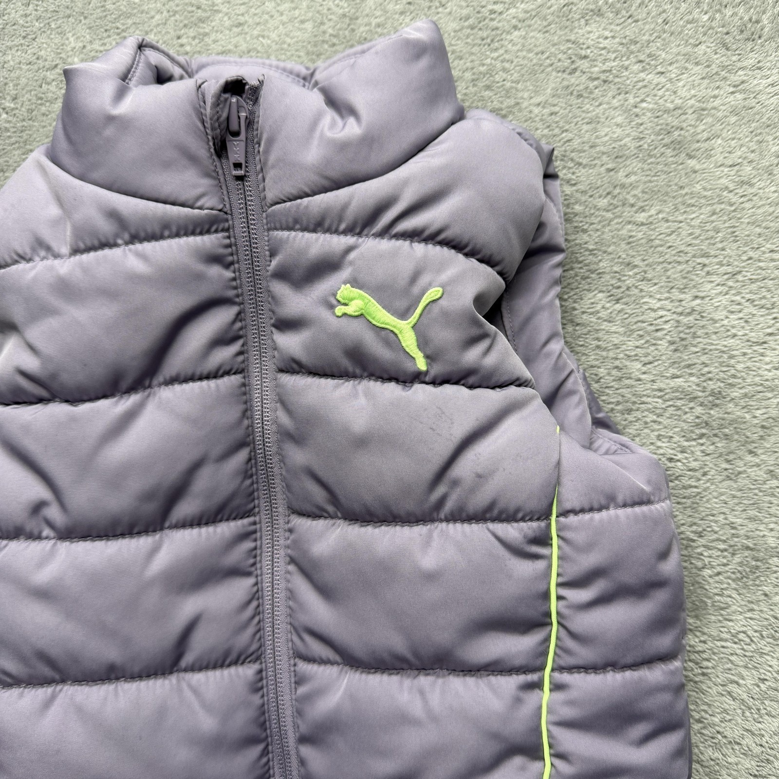 Puma Vest Youth Small Purple Quilted Puffer Insulated Full Zip Logo Winter