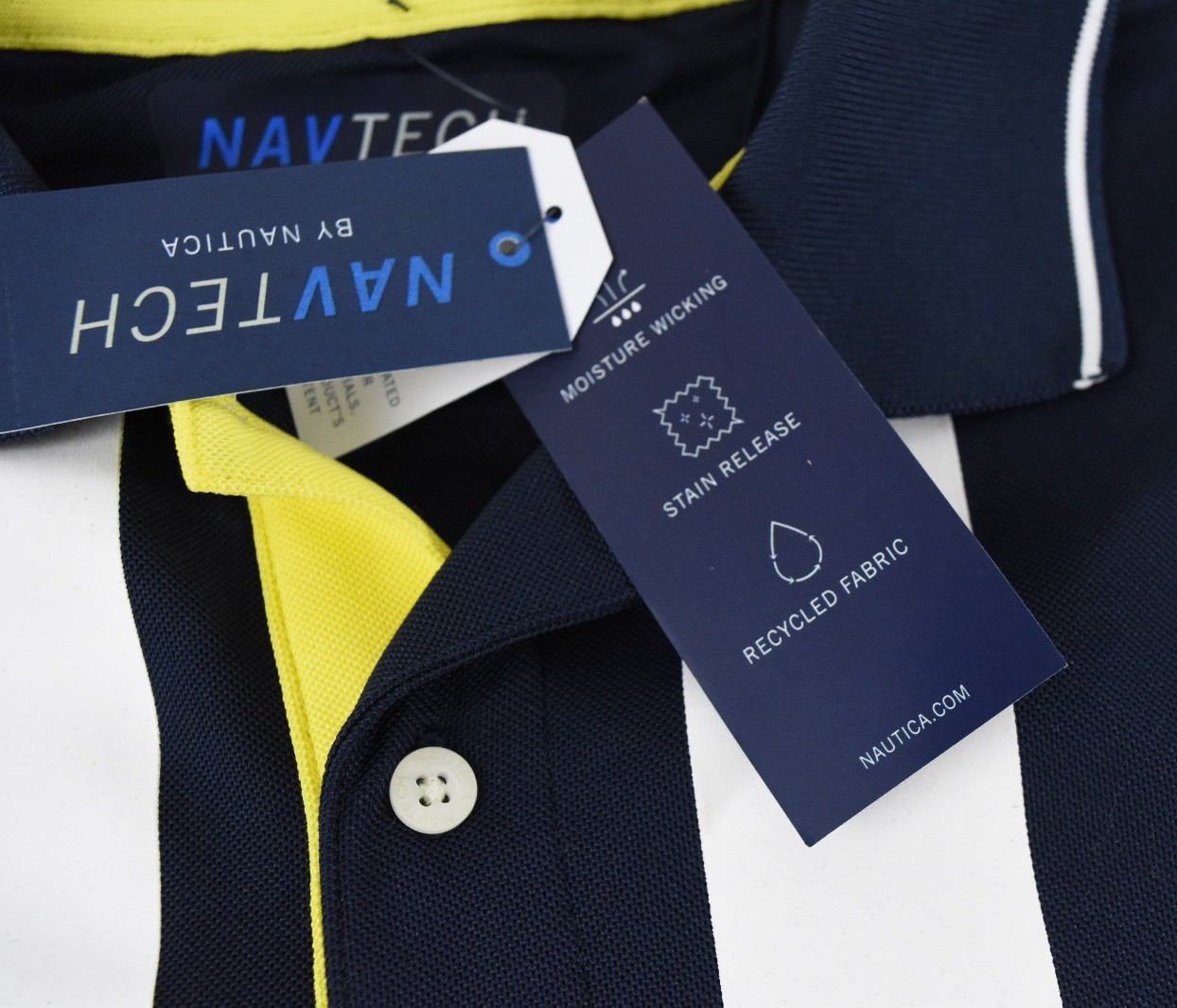 Nautica Mens Polo Shirt New L Navy Blue Colorblocked Logo Short Sleeves Navtech
