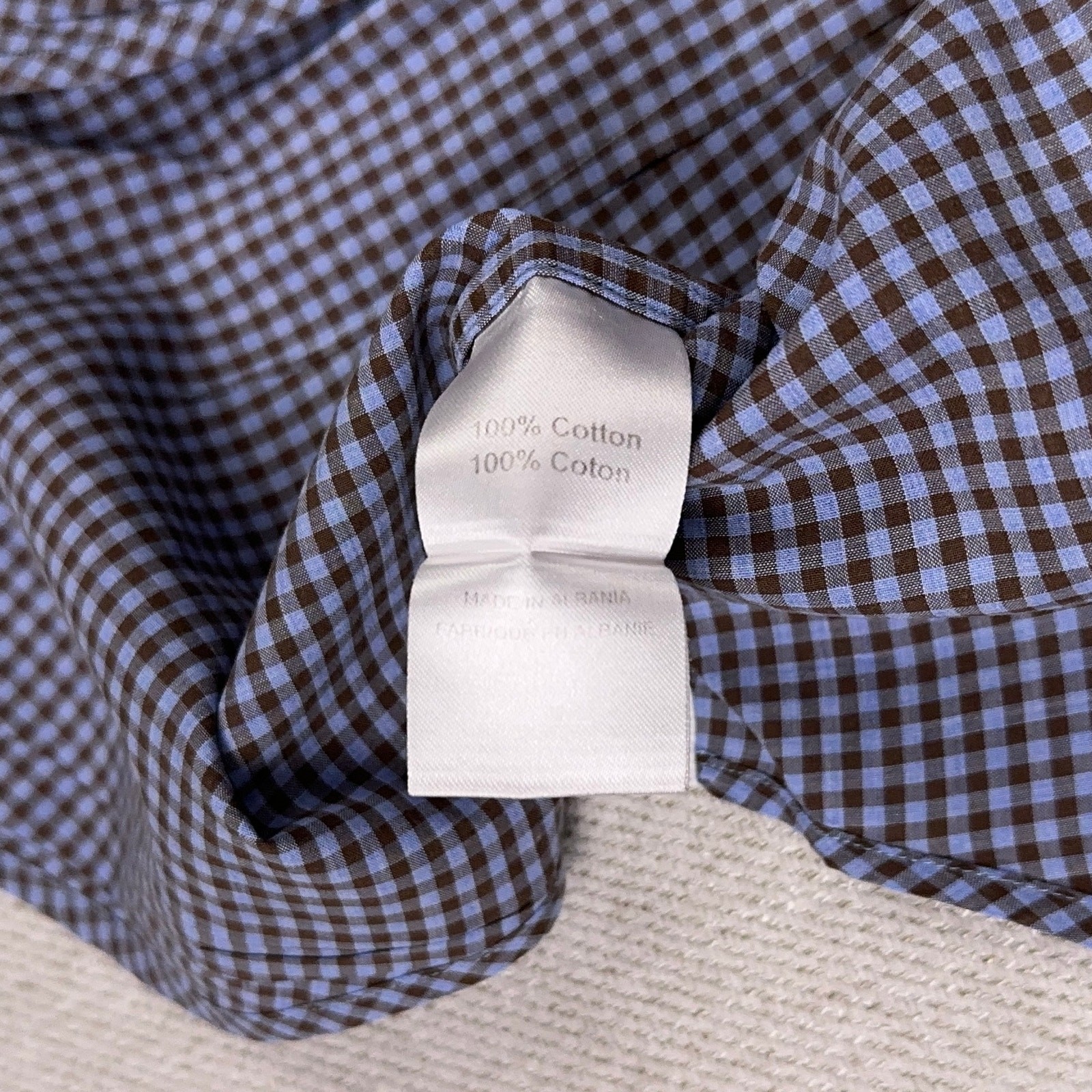 как выглядит Vintage Saks Fifth Avenue Poplin Button Up Dress Shirt Mens M Blue Brown Gingham фото
