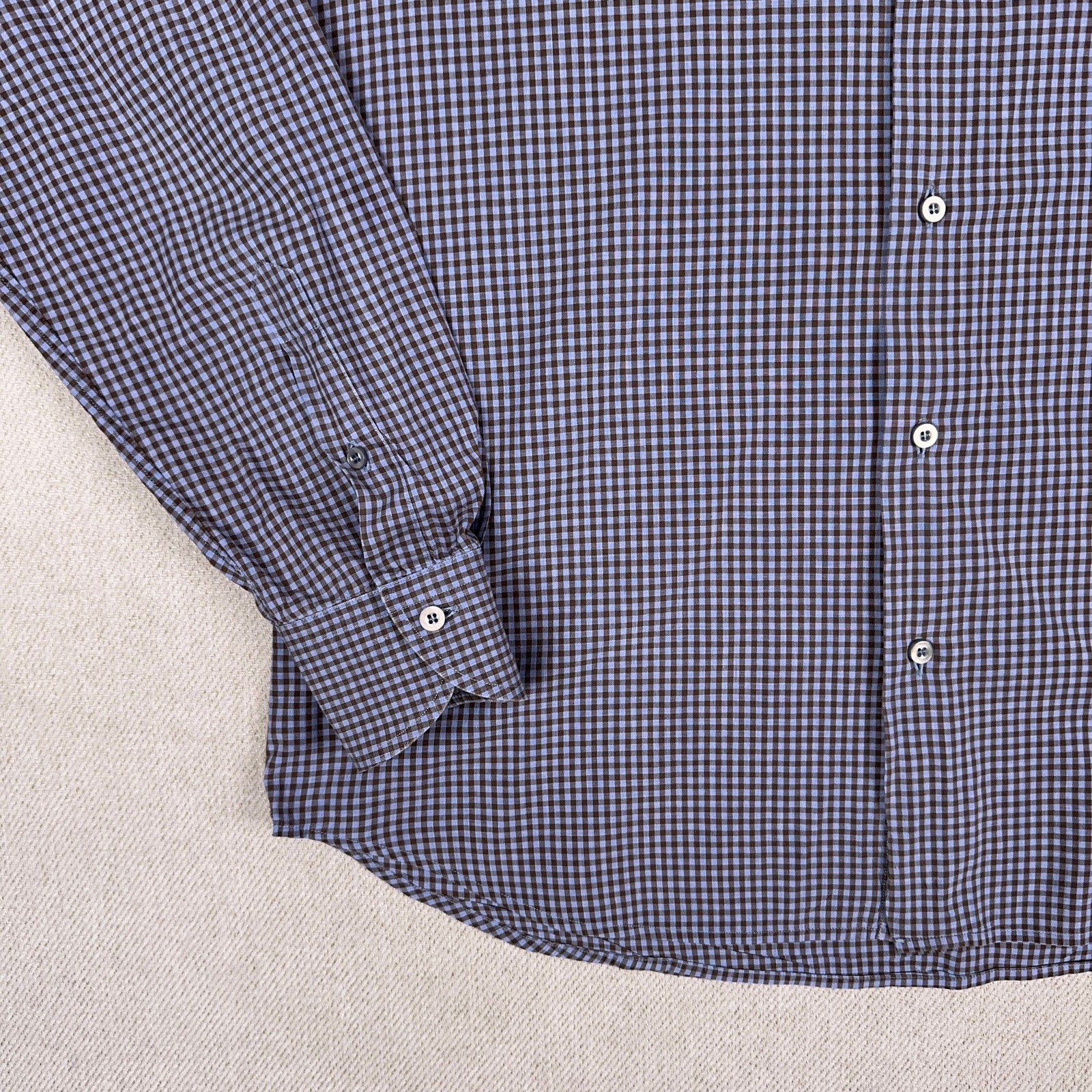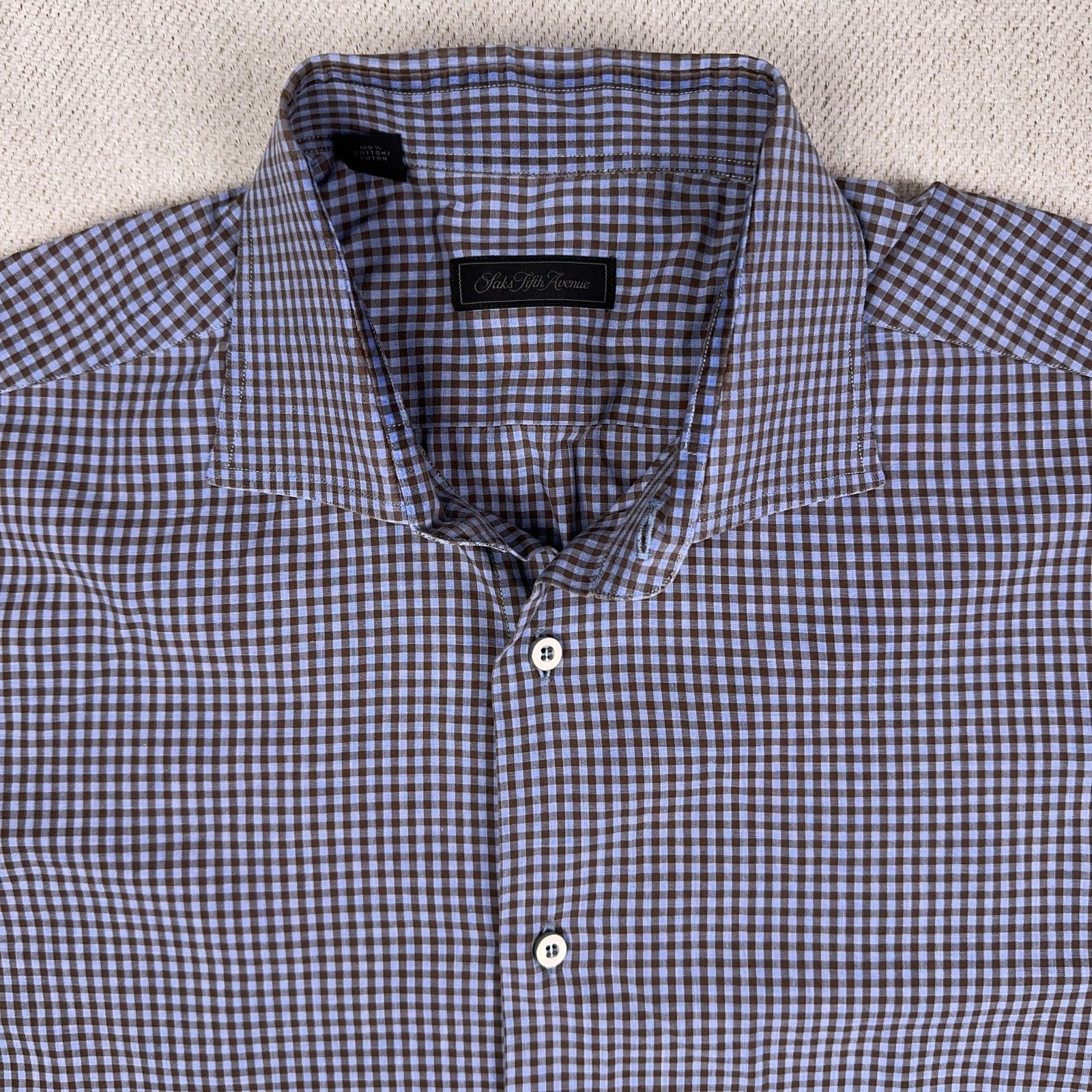 Vintage Saks Fifth Avenue Poplin Button Up Dress Shirt Mens M Blue Brown Gingham