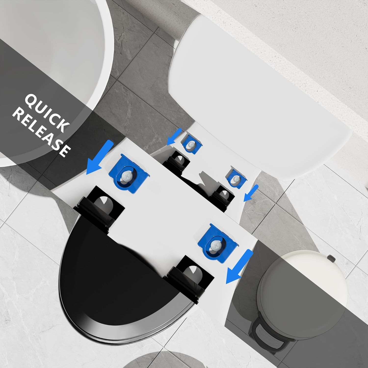 Quiet-Close Molded Wood Toilet Seat Easy Install Clean Black, Elongated 18.5''